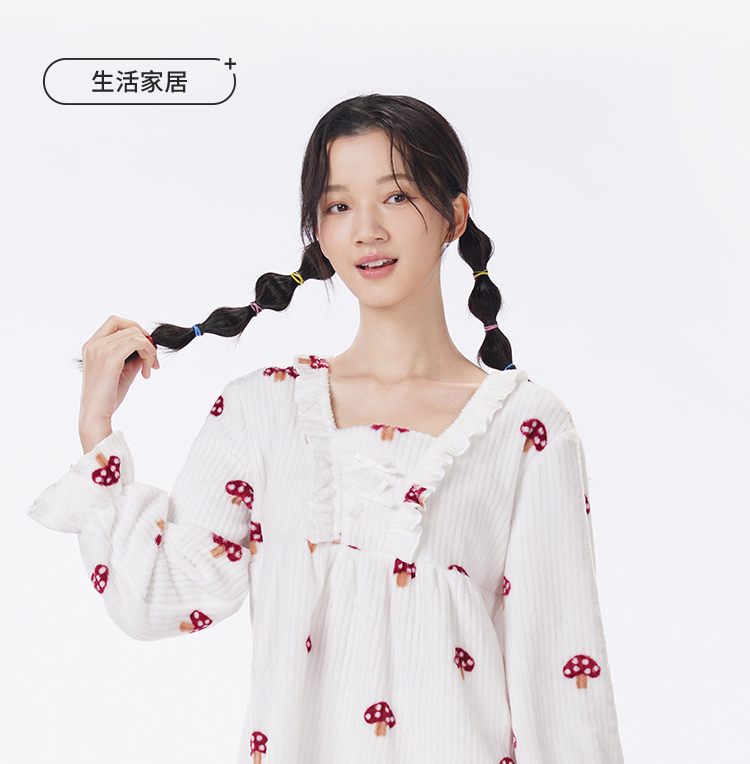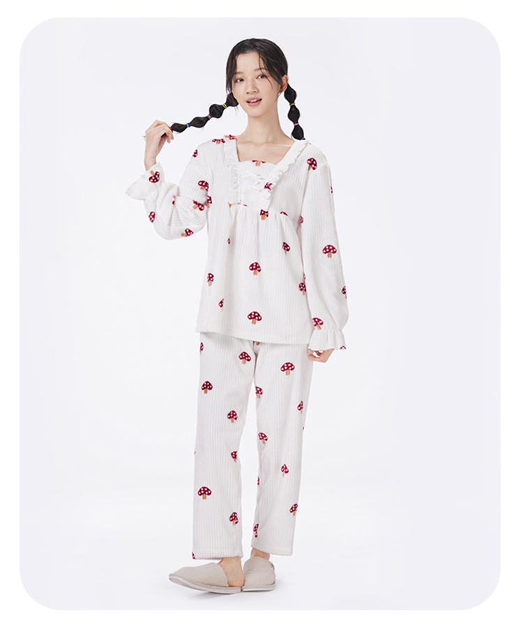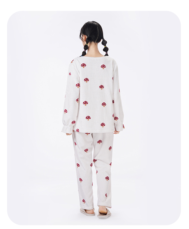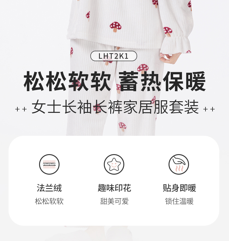 都市丽人眯雅佳长毛绒女士法兰绒厚款长袖长裤类家居服套装LH32H5