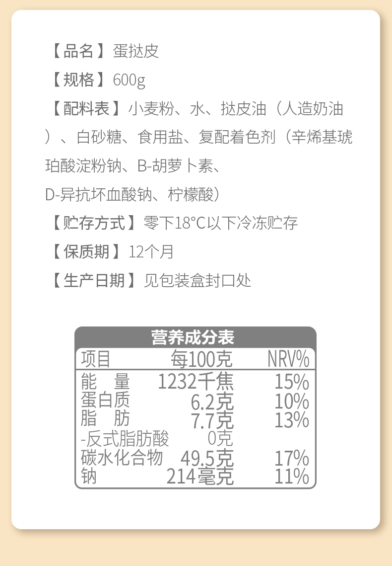 德克士蛋挞皮30枚600g