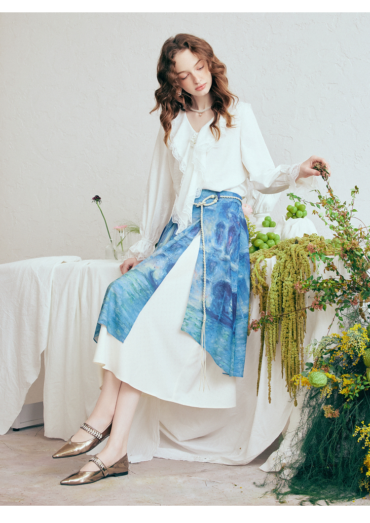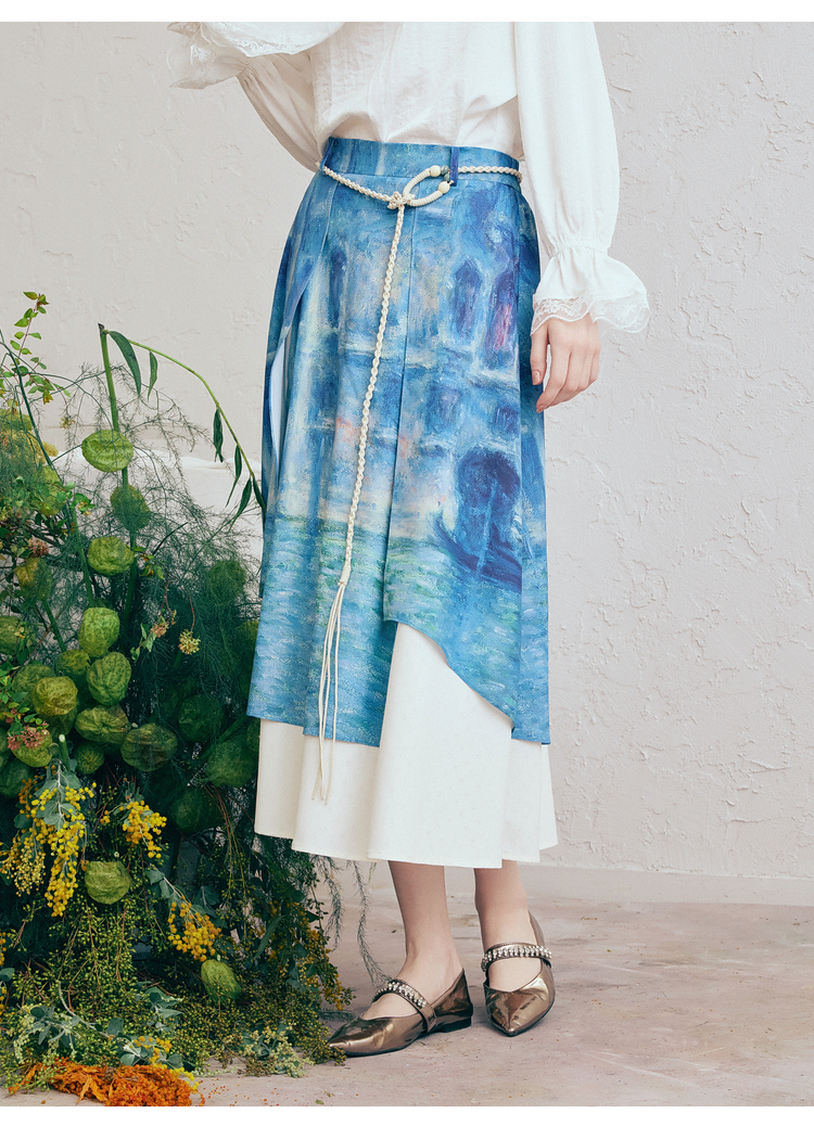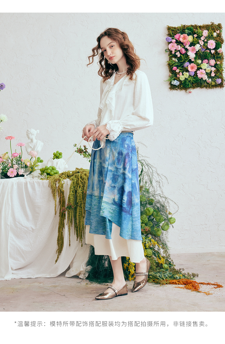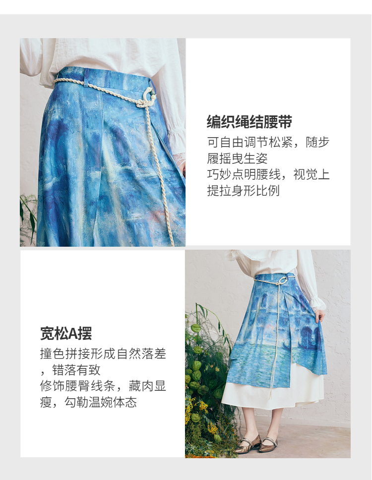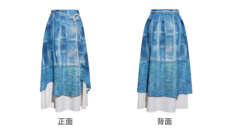 两三事 海风絮语 2026春季新款小清新印花双层裙摆系带a字半身裙