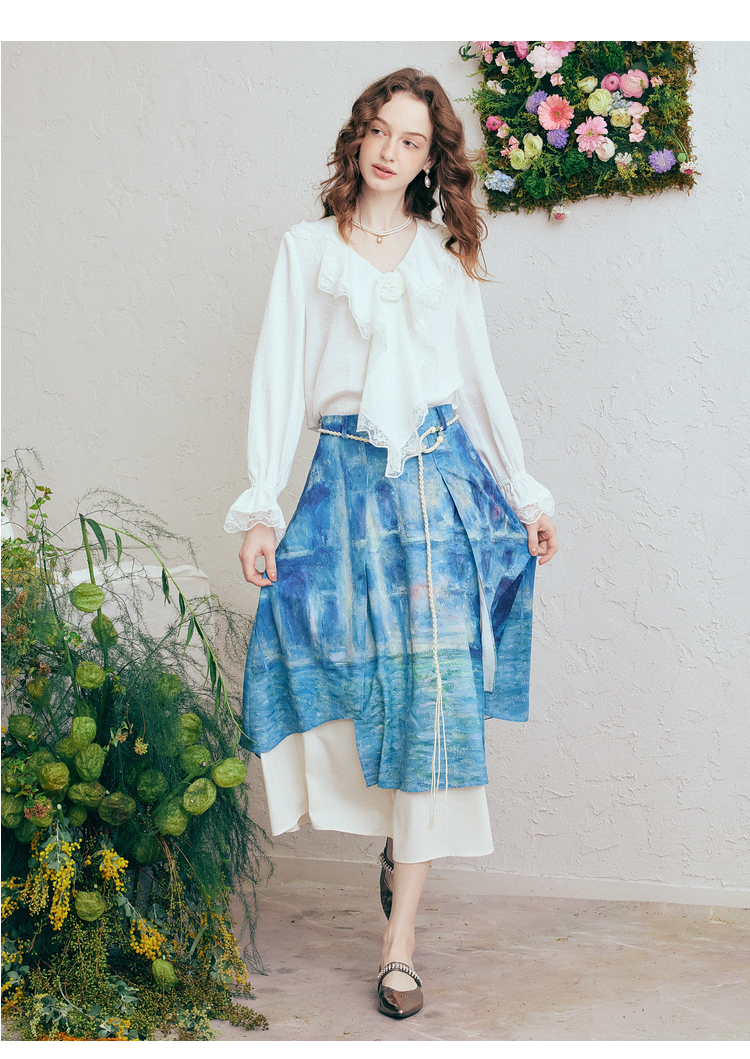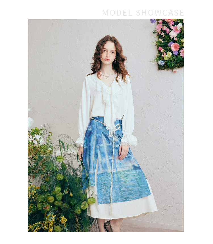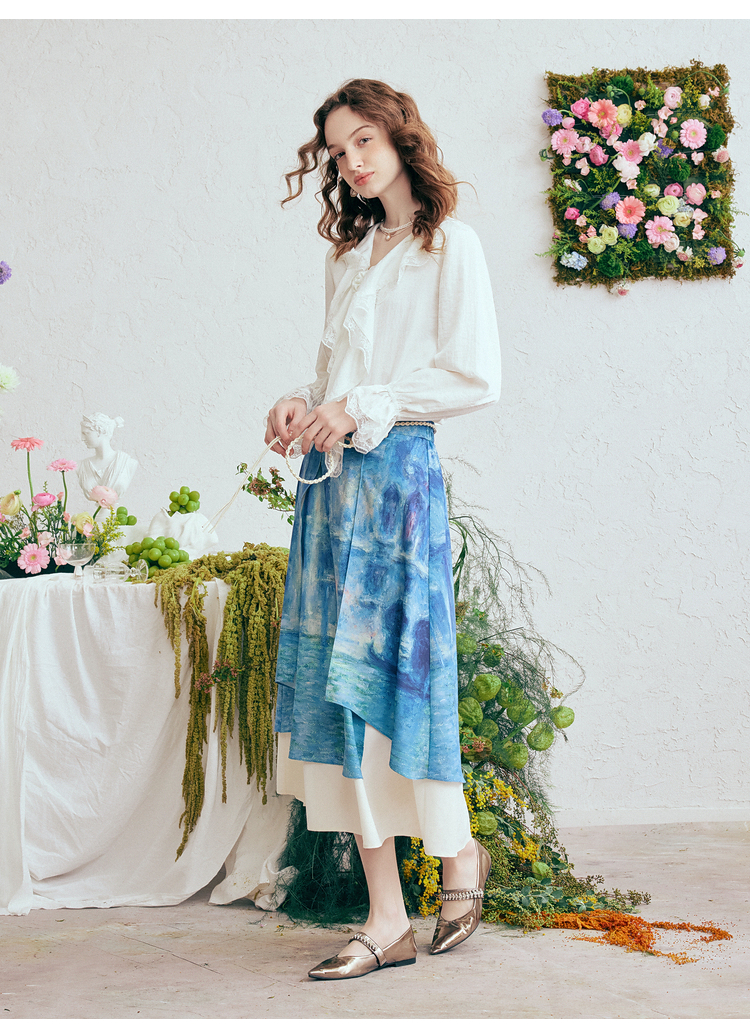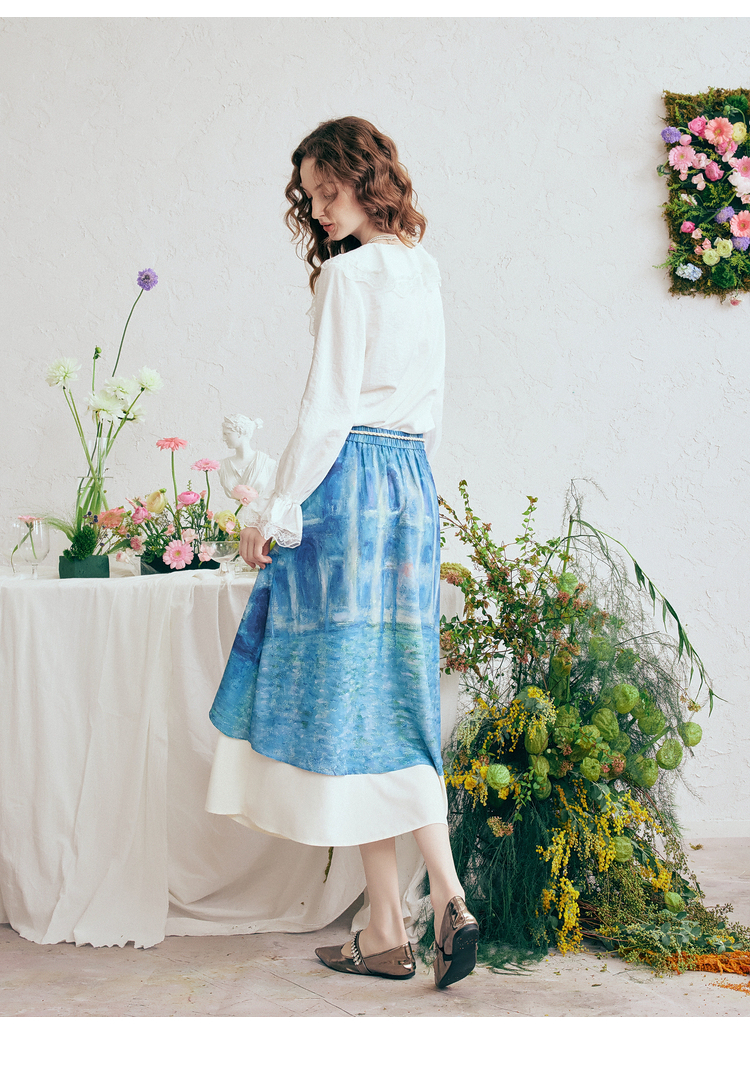 两三事 海风絮语 2026春季新款小清新印花双层裙摆系带a字半身裙