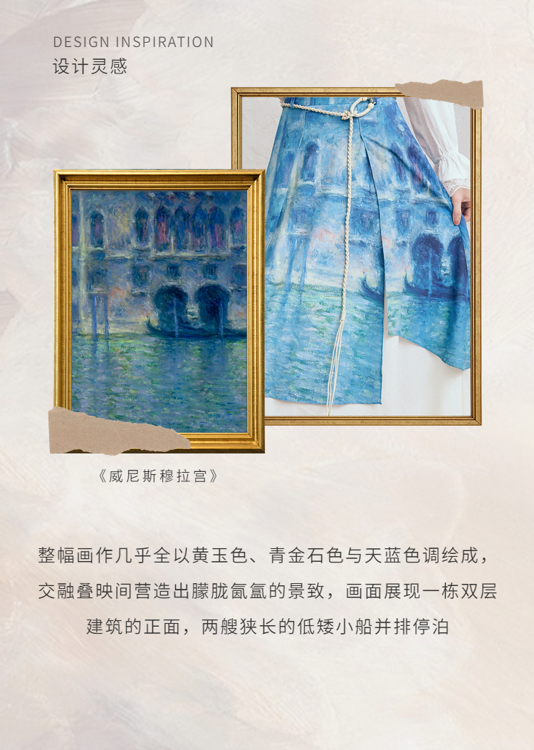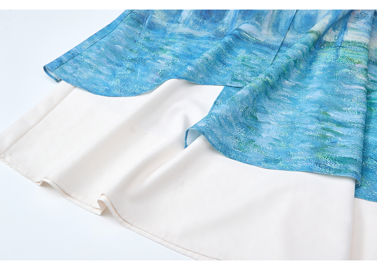 两三事梵高艺术荷以清凉夏季田园风泡泡袖印花绑带连衣裙