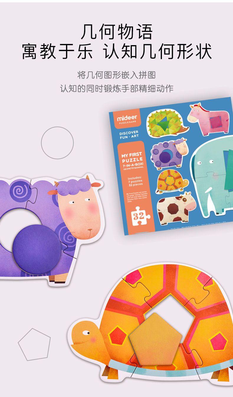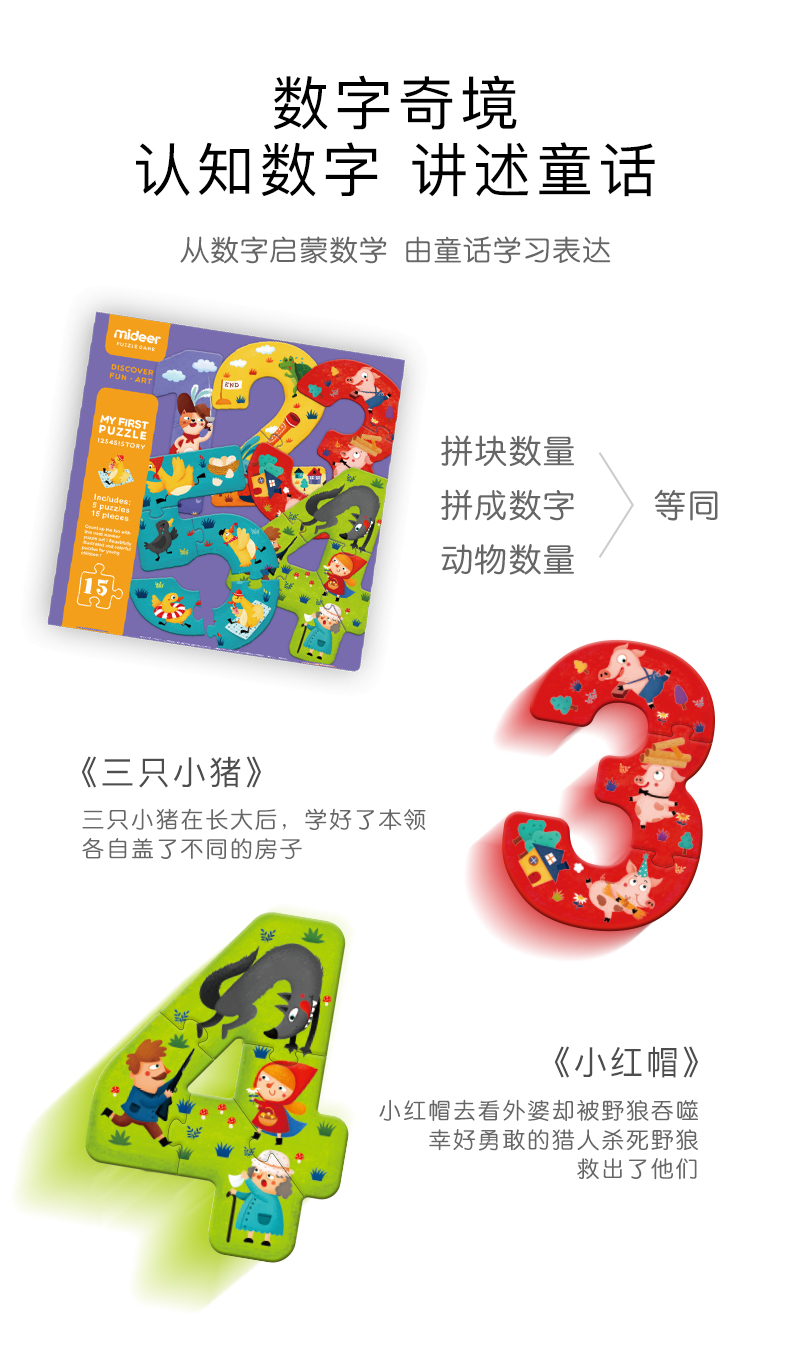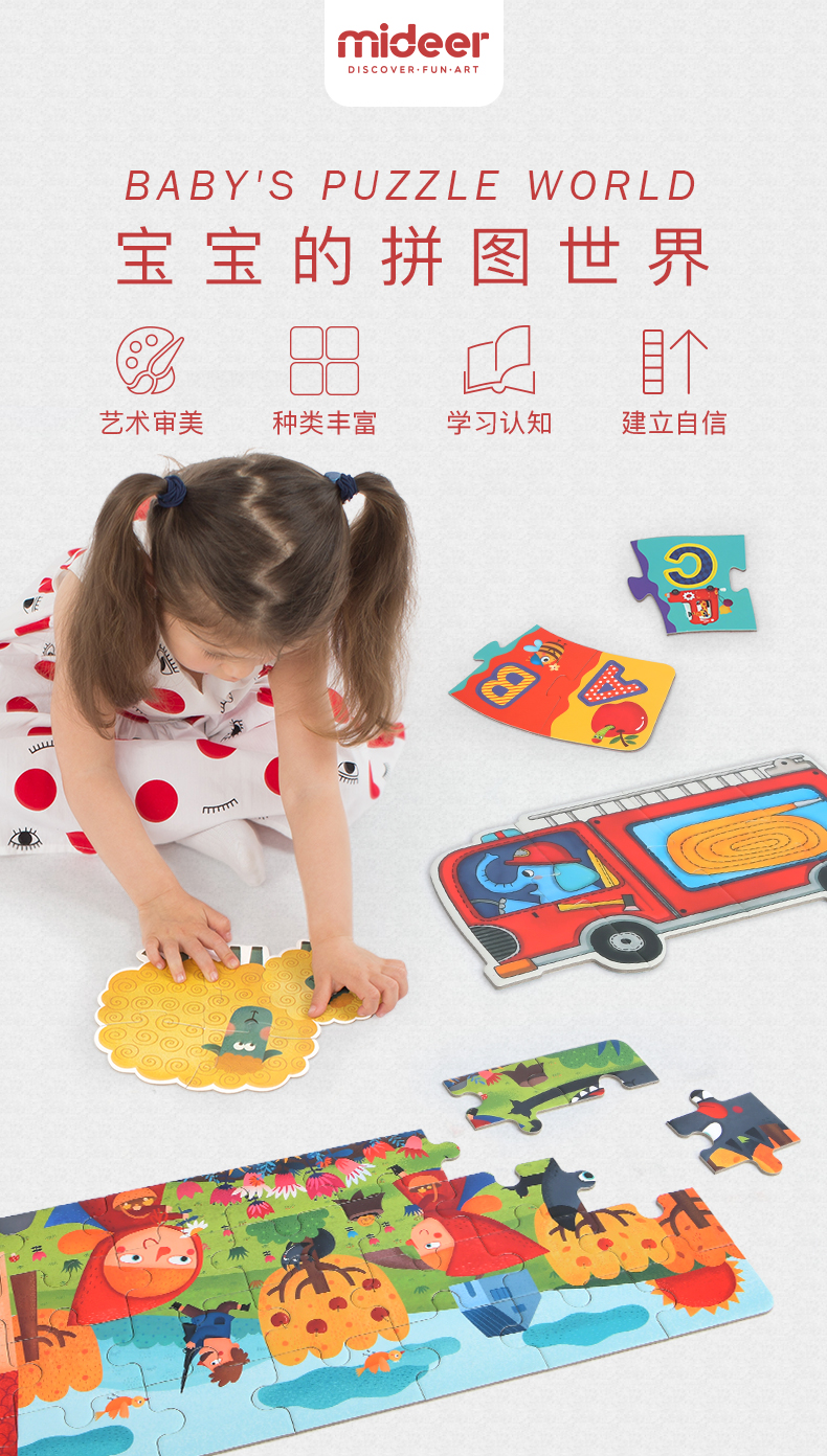 mideer弥鹿 大块拼图儿童入门益智宝宝早教男女孩幼儿玩具1-2-3岁