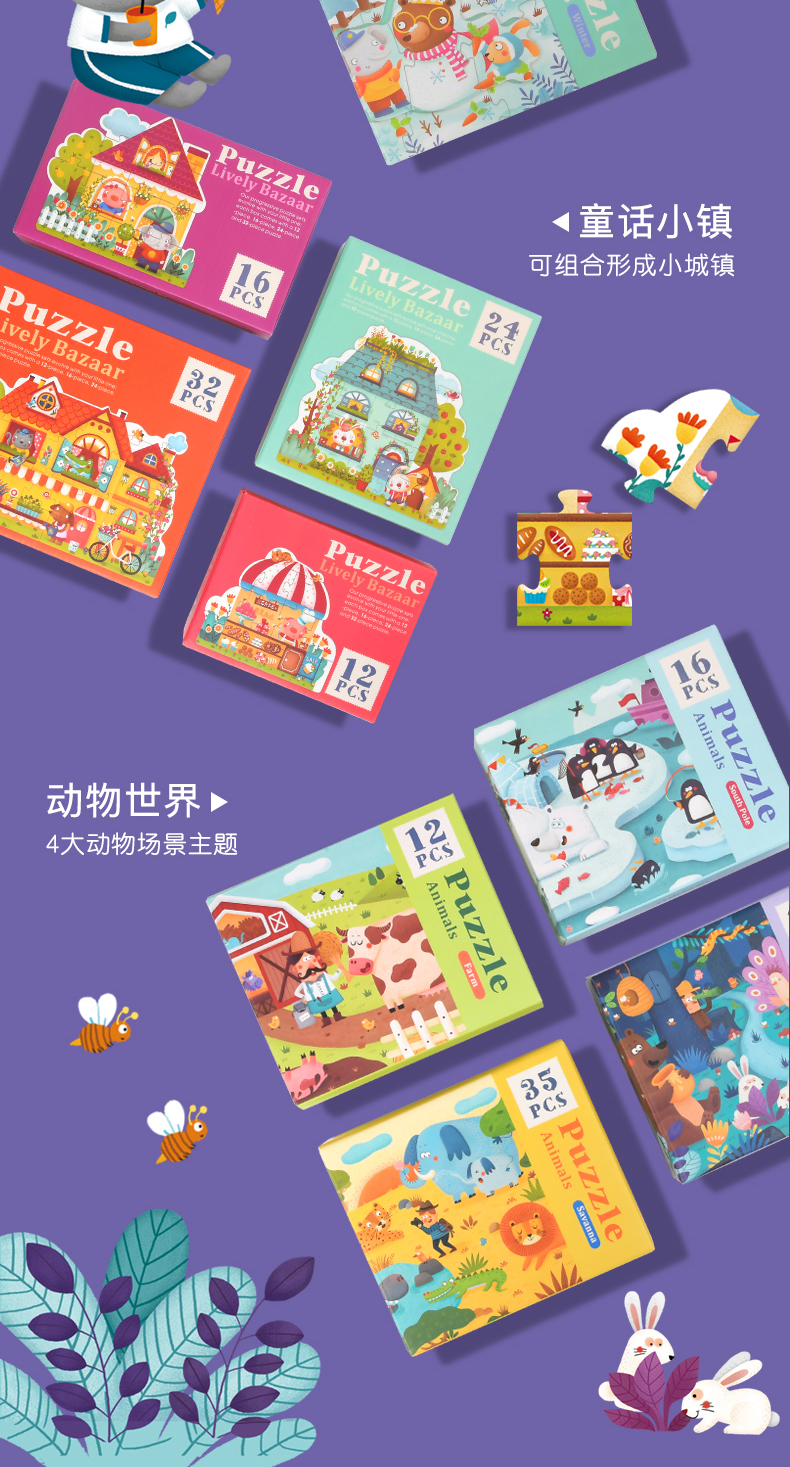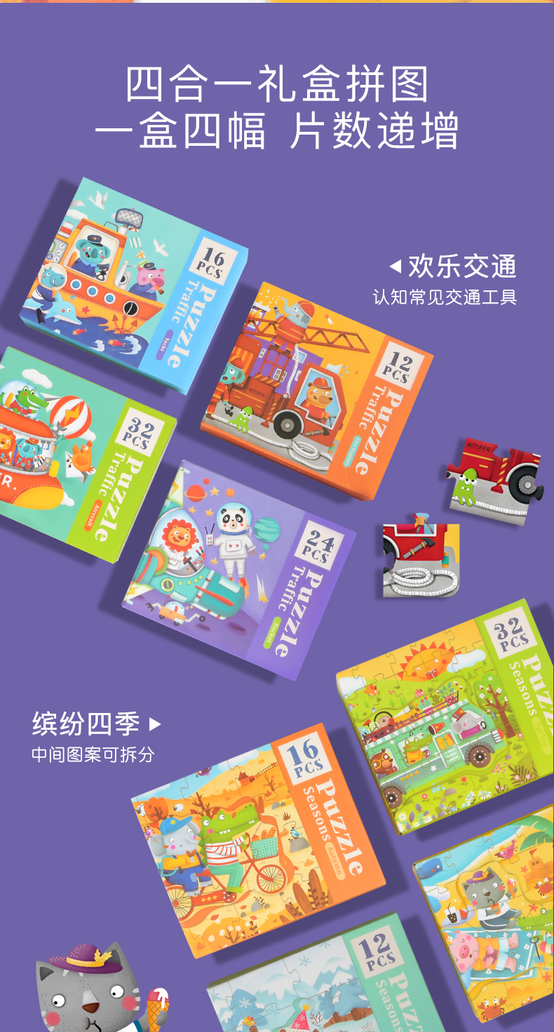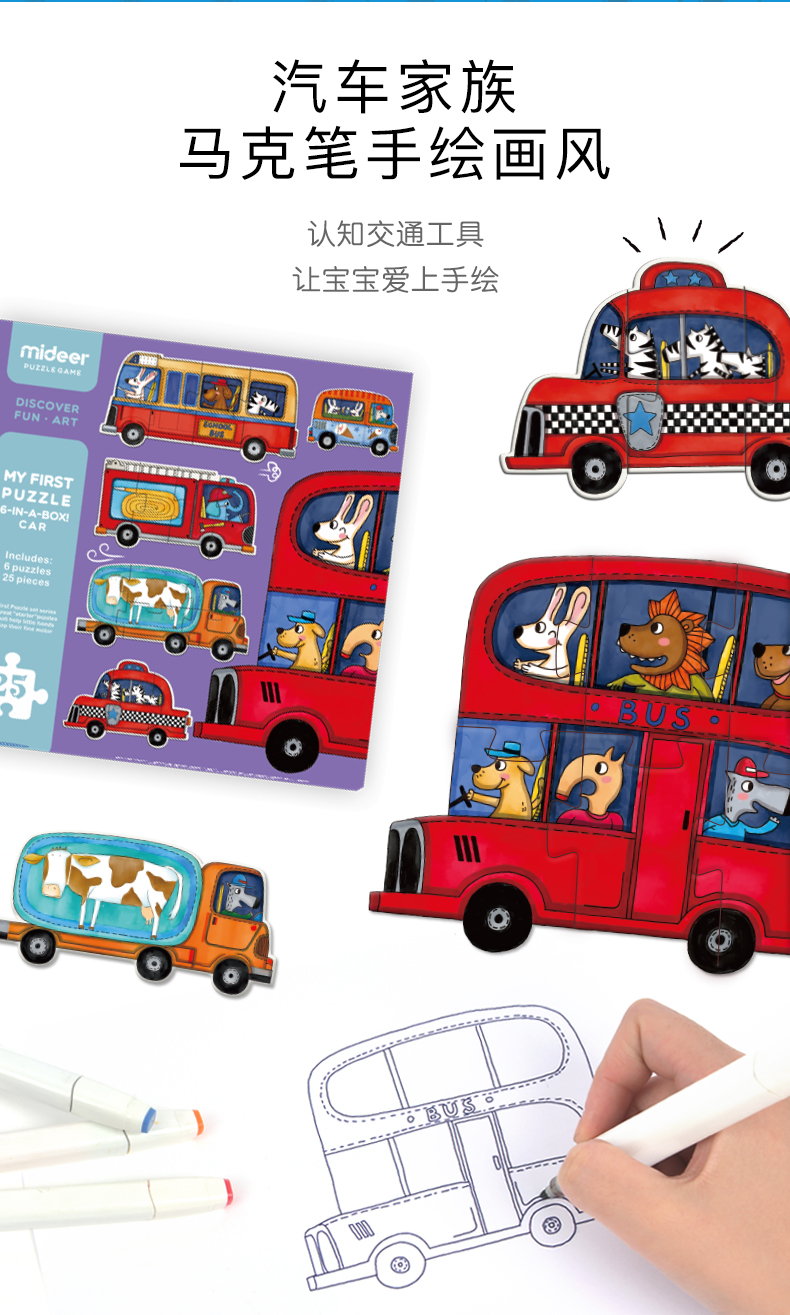 mideer弥鹿 大块拼图儿童入门益智宝宝早教男女孩幼儿玩具1-2-3岁