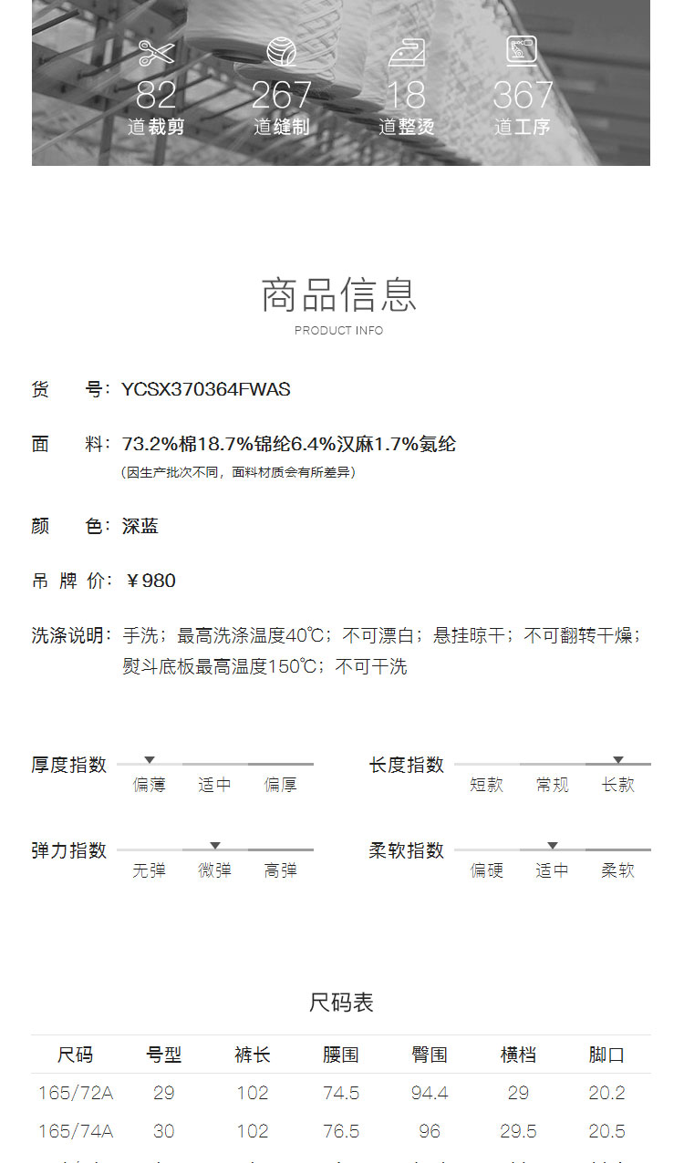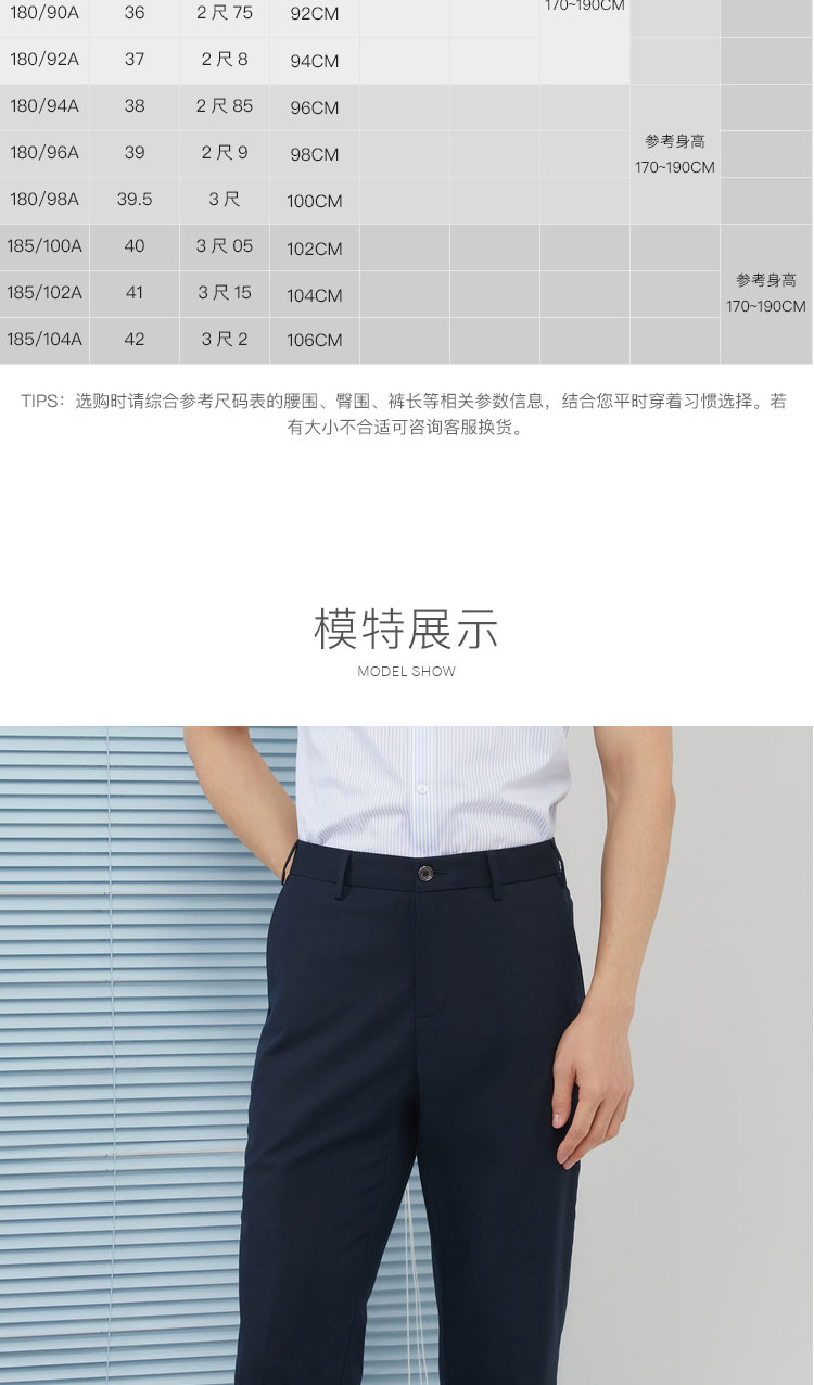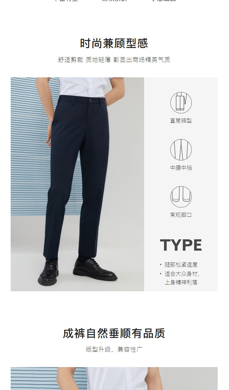 雅戈尔男士休闲长裤春季新款商务休闲上班长裤YCSX370364FWAS