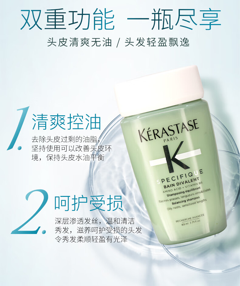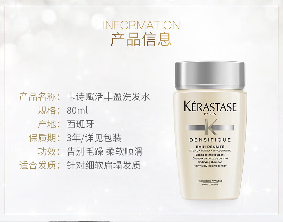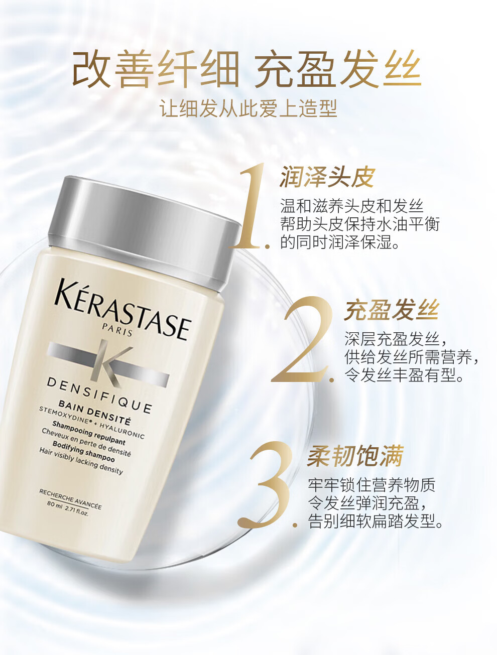 卡诗(KERASTASE)洗发水 改善细软脆弱 扁榻发质蓬松洗发露 80ml