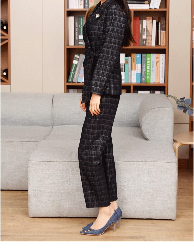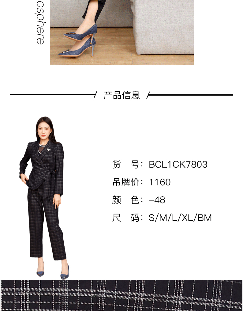 宗洋zongyang女装2022春季新品宽松格子休闲裤BCL1CK7803-48