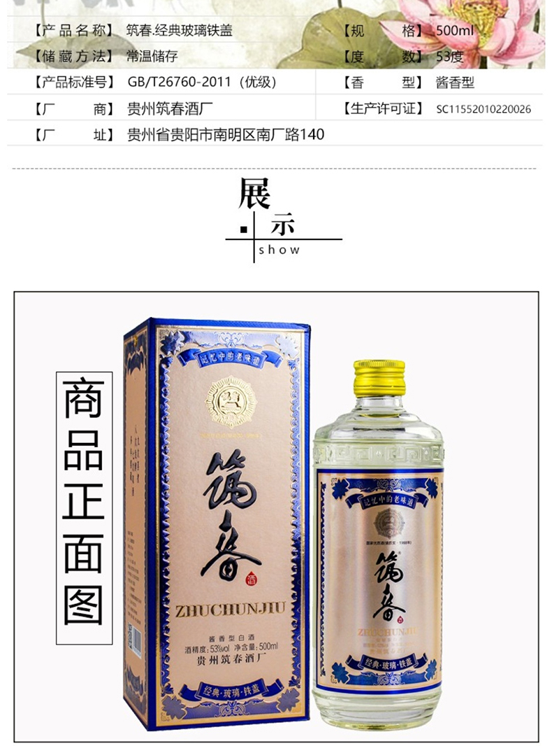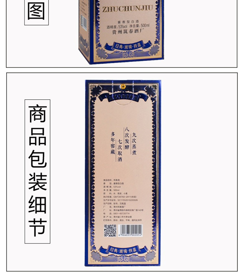 【贵州酱酒】筑春经典铁盖 53度酱香型白酒 整箱6瓶*500ml包邮