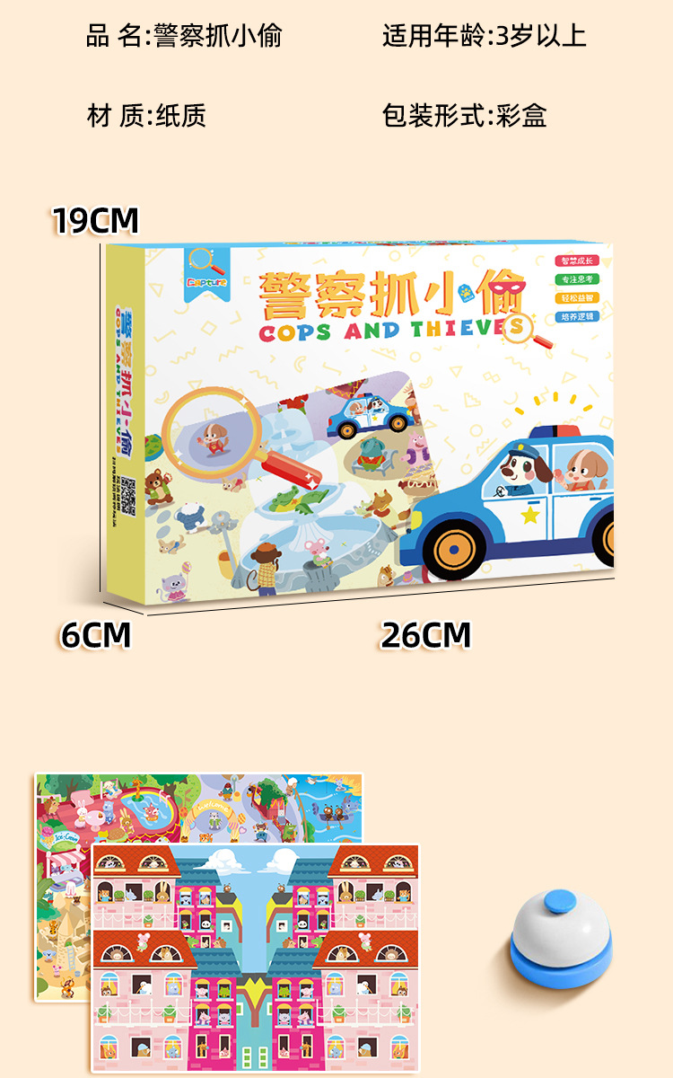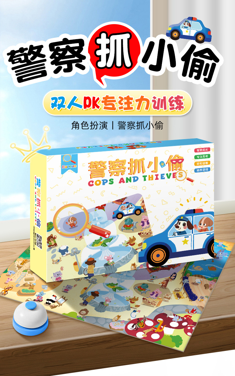 警察抓小偷玩具儿童桌游熊猫餐厅益智思维训练男女亲子对战专注力亲子桌游