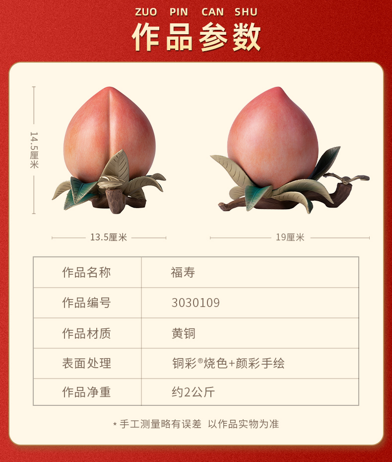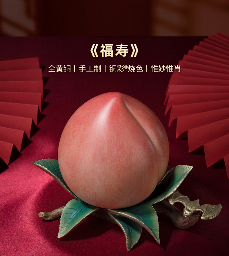 铜师傅 铜摆件《福寿》客厅桌面家居铜工艺品寿桃摆件祝寿礼品