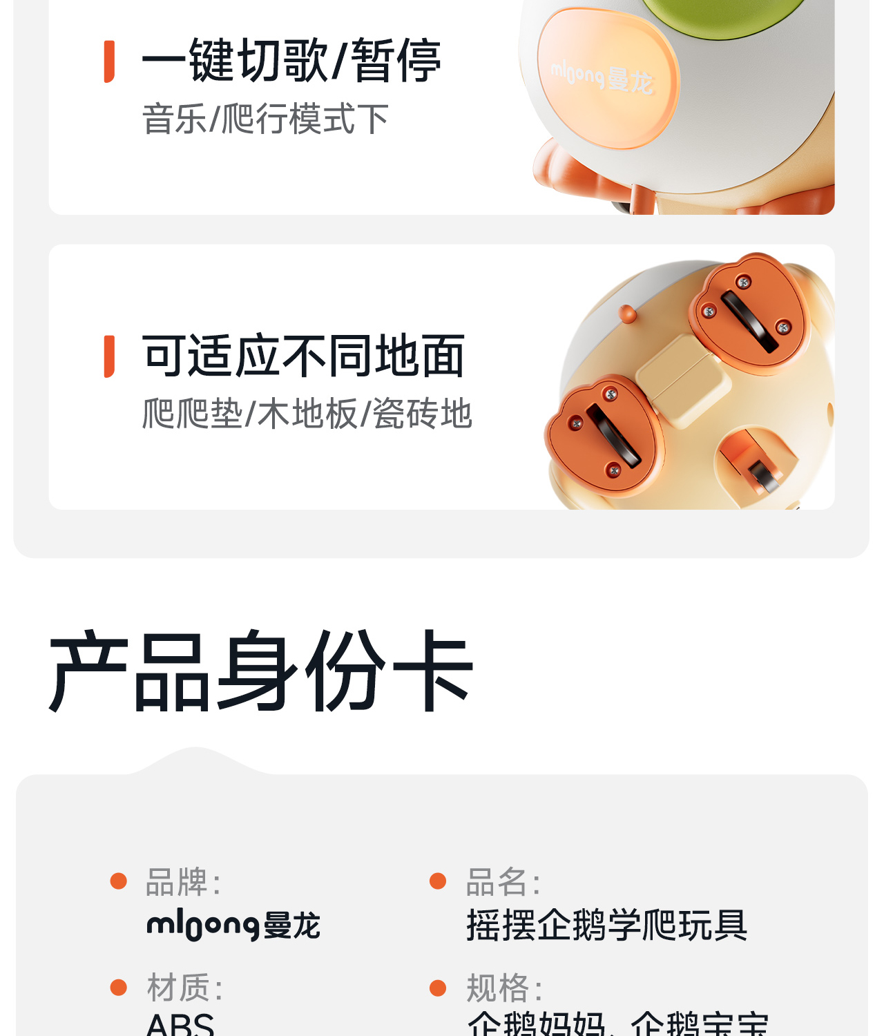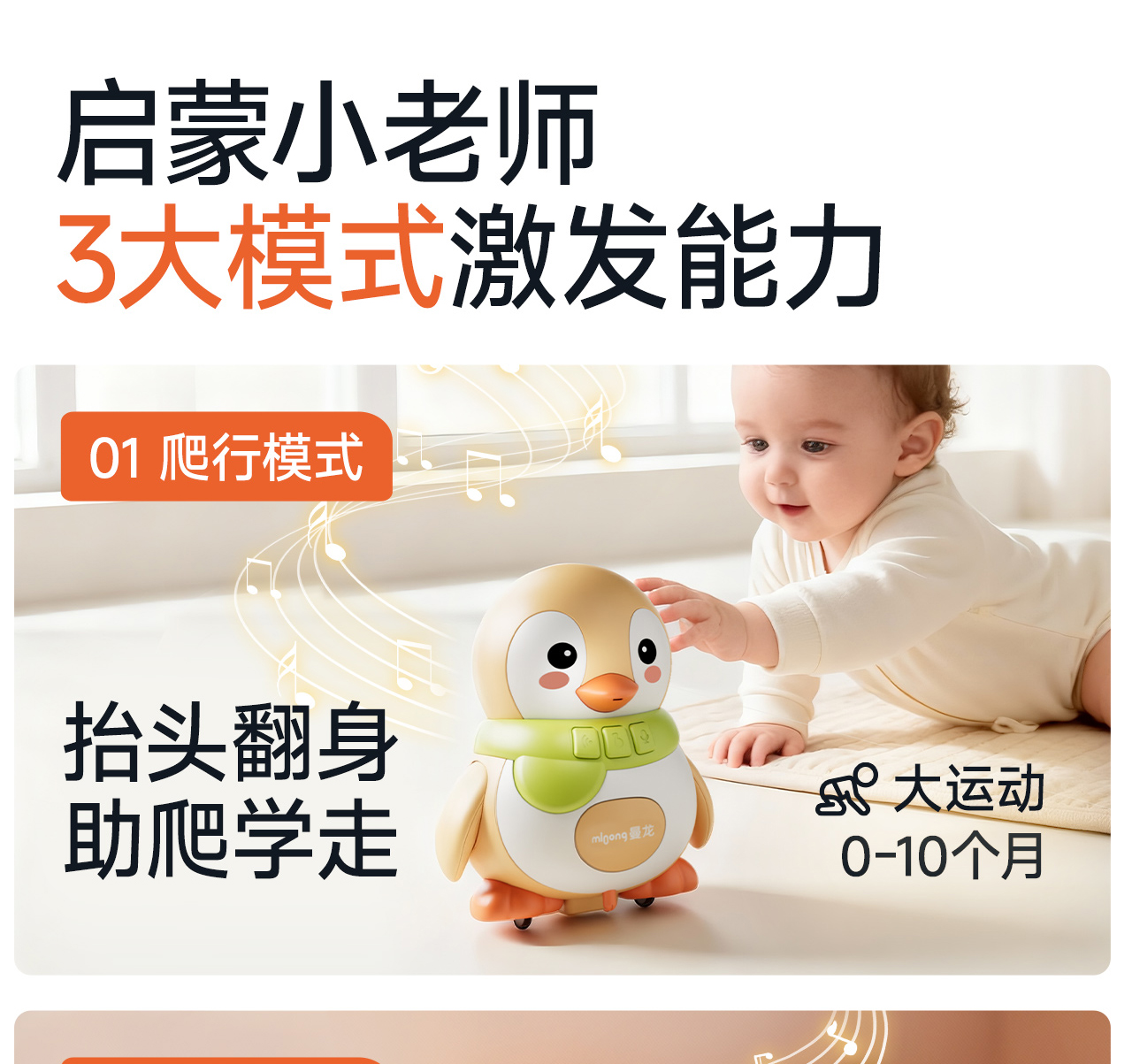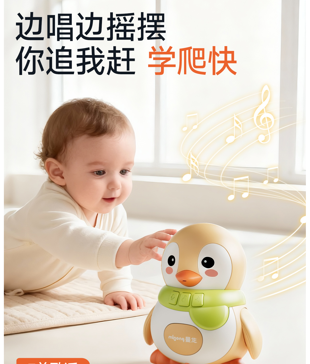 【冬日暖拥】曼龙mloong儿童玩具宝宝学爬摇摆企鹅训练爬行抬头练习引导追玩