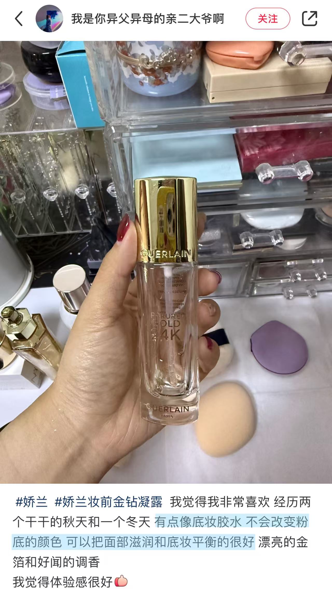 【品名】Guerlain娇兰金钻焕彩凝露金箔24K妆前打底冷白银色35ml 冷调肤色
