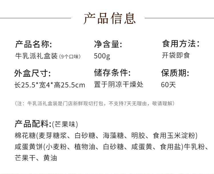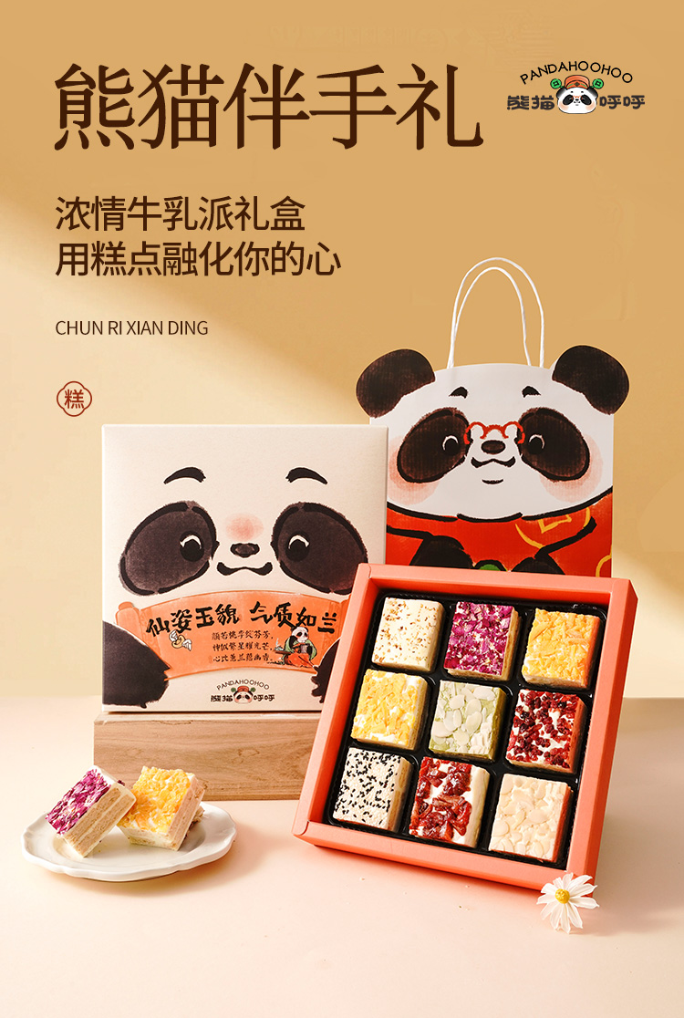 【成都大熊猫糕点主题馆】牛乳派礼盒装9个口味,新鲜现切现发