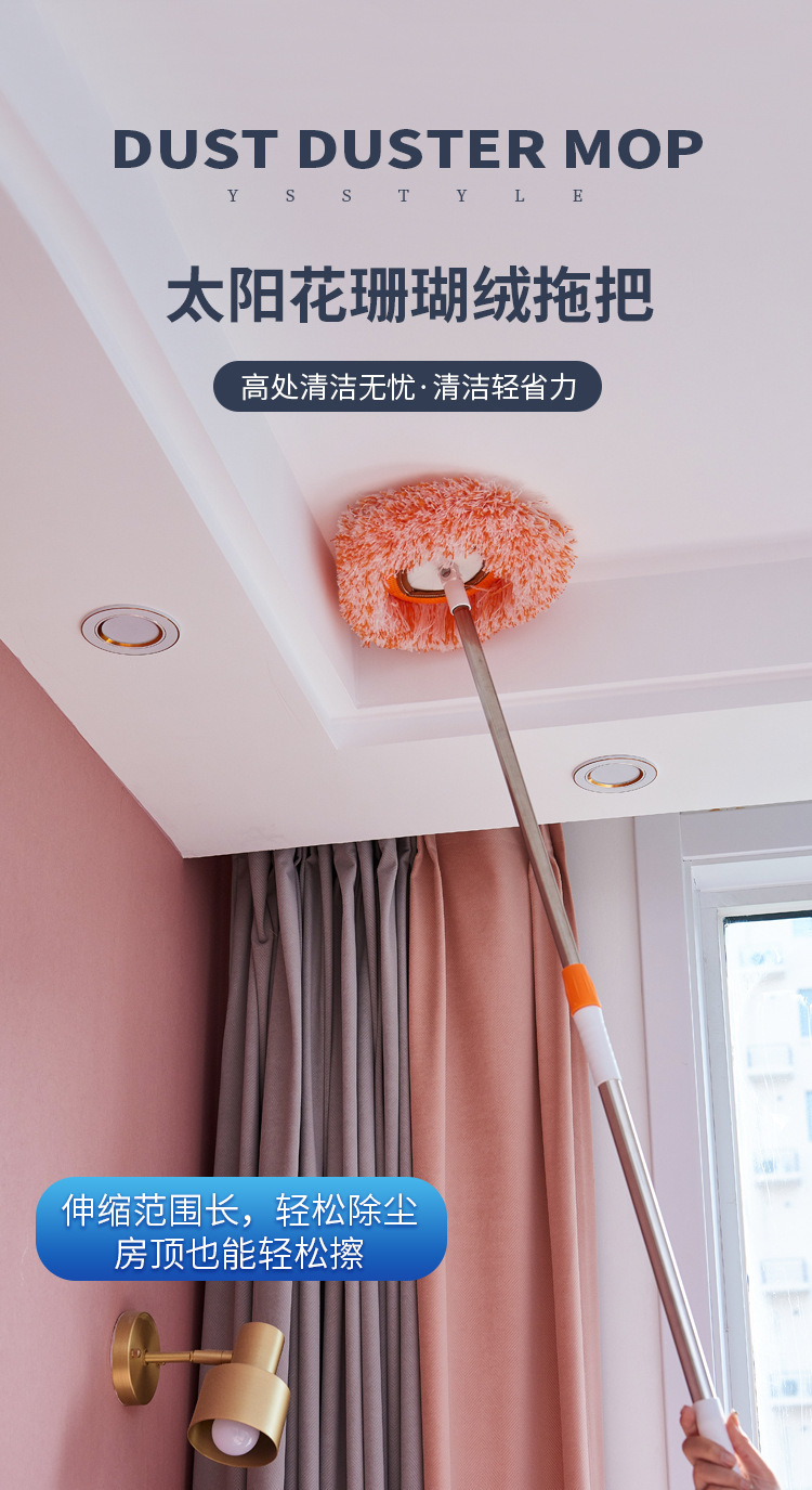 【省时超省力!多功能太阳花拖把】除了拖地,还能除尘、洗车、擦墙、甚至天花板都能轻松搞定!向日葵鸡毛掸子抹布~