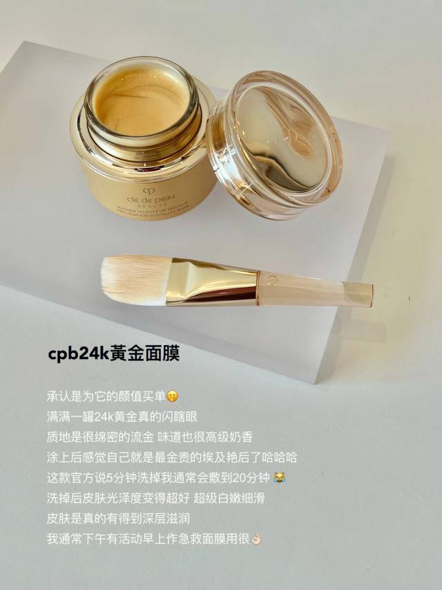 这个日本肌肤之钥Cpb的 24K黄金面膜,建议搭配美容仪蒸脸机,或者浴室泡澡的时候用,利用水蒸汽让它更加好的吸收。
