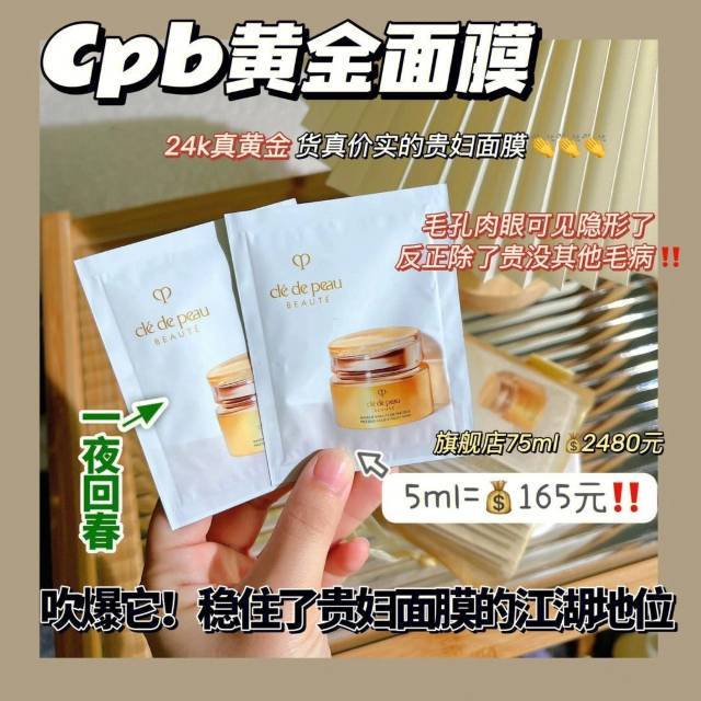 109.9入5片CPB黄金面膜5ml!5片价📣史上最贵妇🌟cpb黄金面膜5ml小样来了‼️75ml要2480元的超奢华顶配面膜,现在5片*5ml🟰25ml只要💰109.9‼️