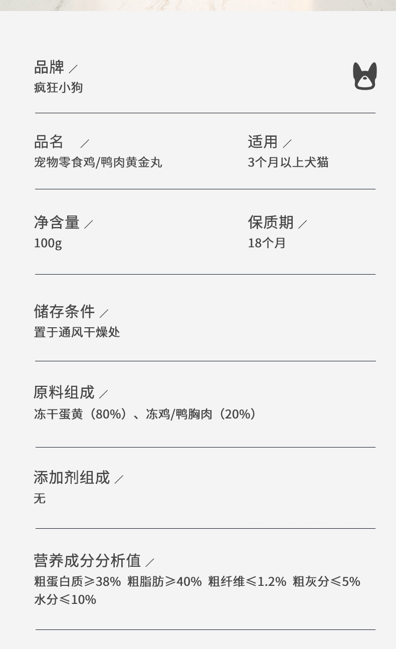 疯狂小狗 狗零食 美味狗粮伴侣100g 蛋黄肉松蔬菜