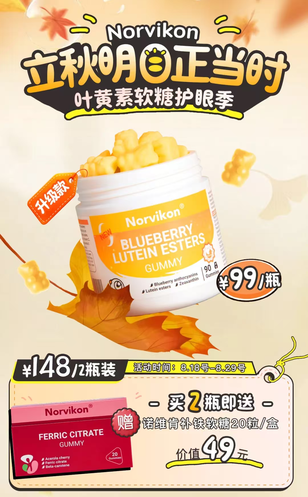 【第二件半价】美国进口诺维肯护眼软凝萃蓝莓叶黄素软糖 用眼过度 保护眼睛 预防近视 小孩老人都能吃