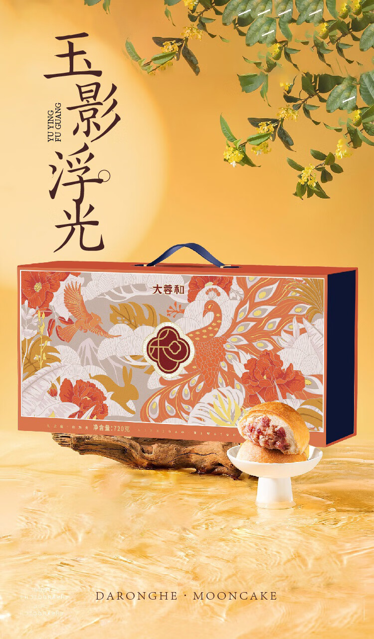 大蓉和月饼中秋节礼盒 滇式广式月饼糕点 过节送礼品 玉影浮光720g(7味10饼) 礼盒装