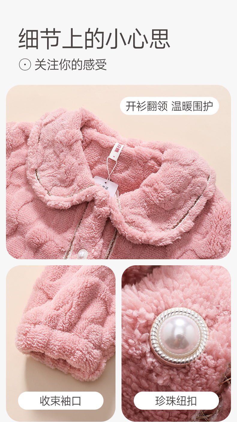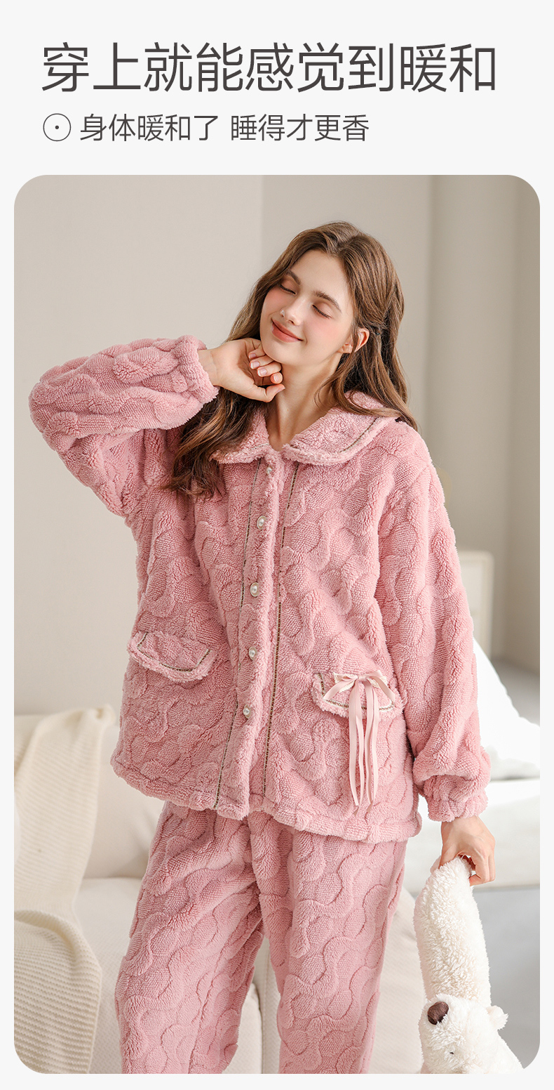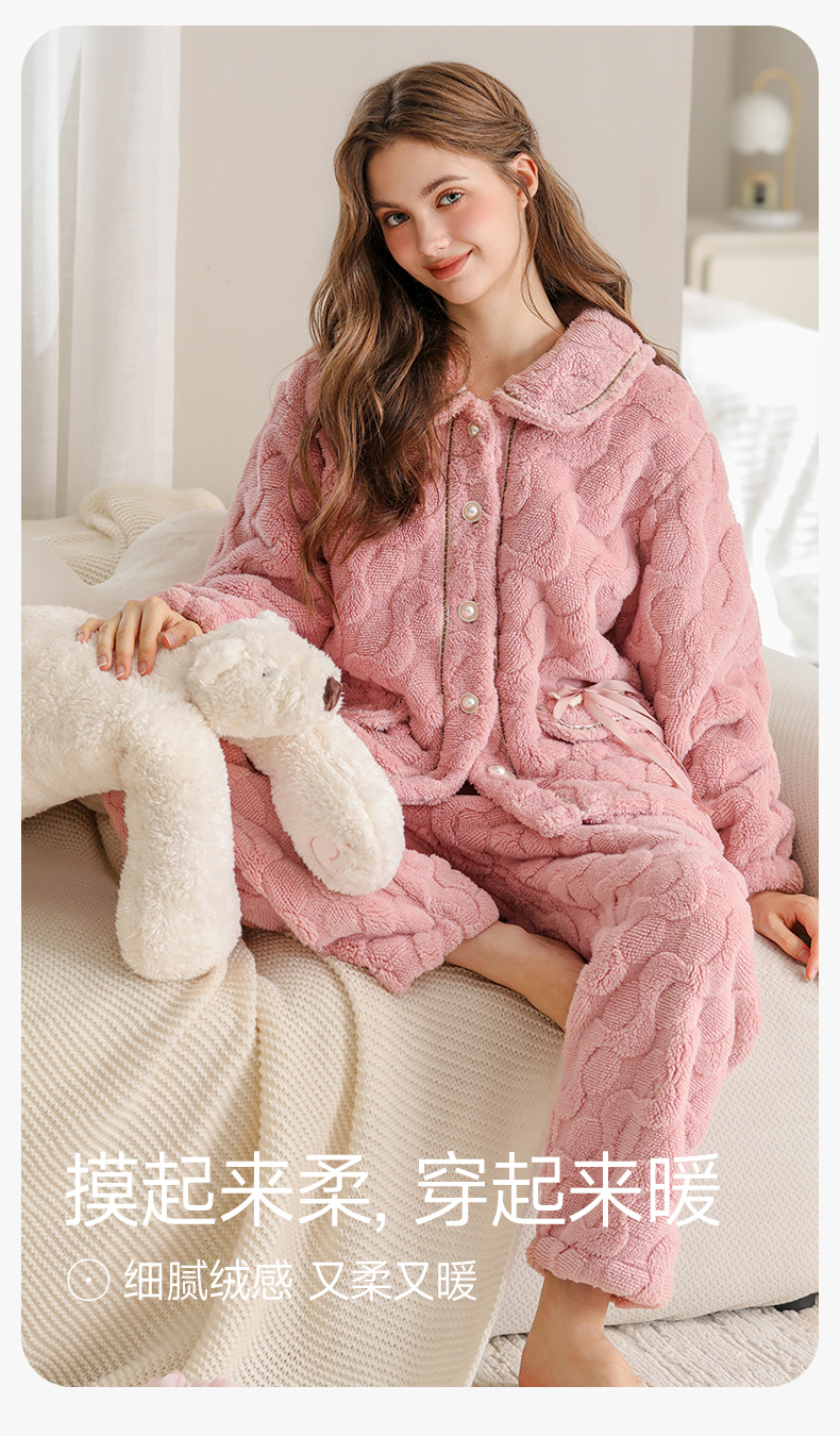芬腾秋冬季珊瑚绒女士睡衣加绒加厚套装新款宽松大码法兰绒家居服