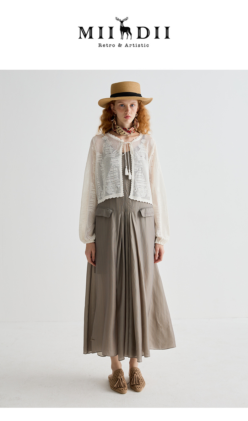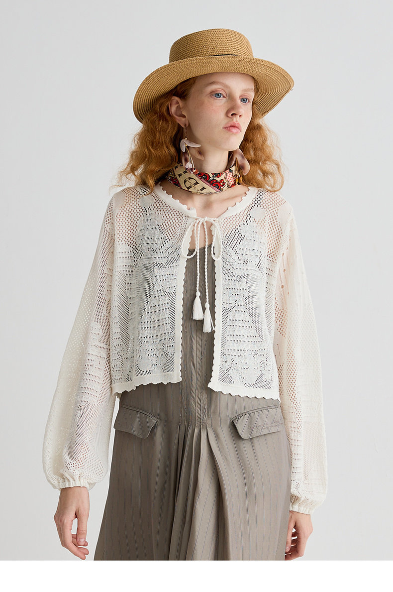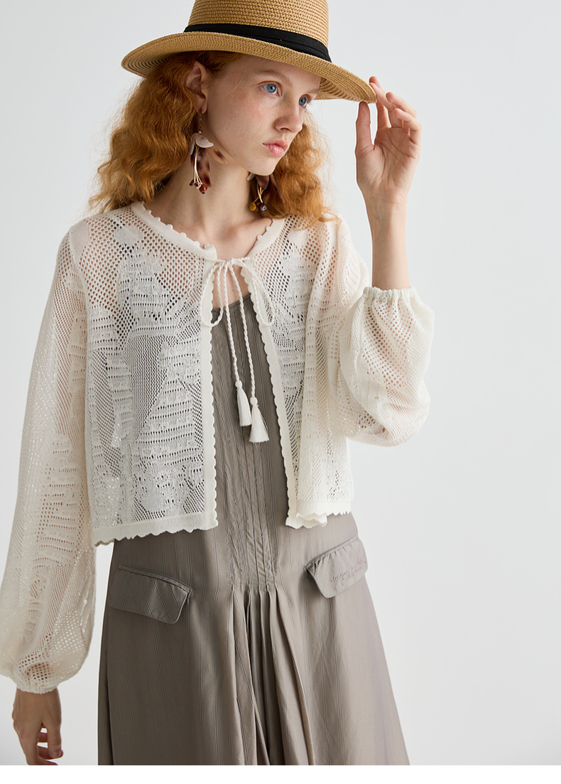 谜底针织开衫长袖女2025夏季新品复古文艺合身H型短毛衣252MZ0881