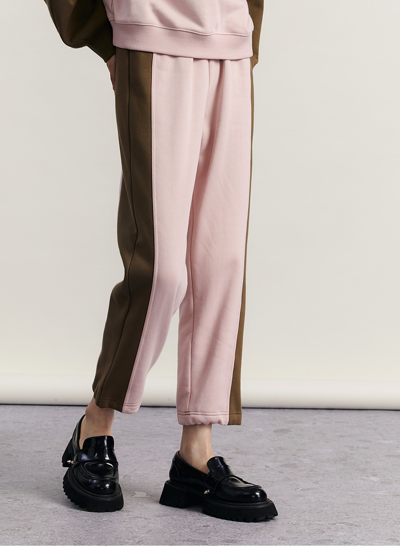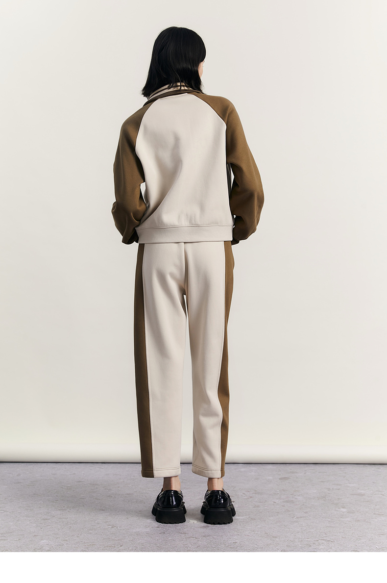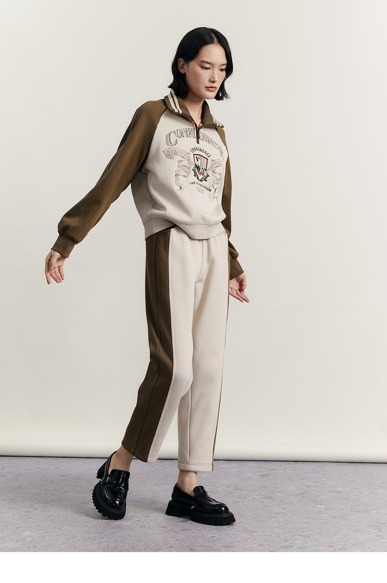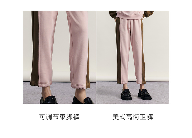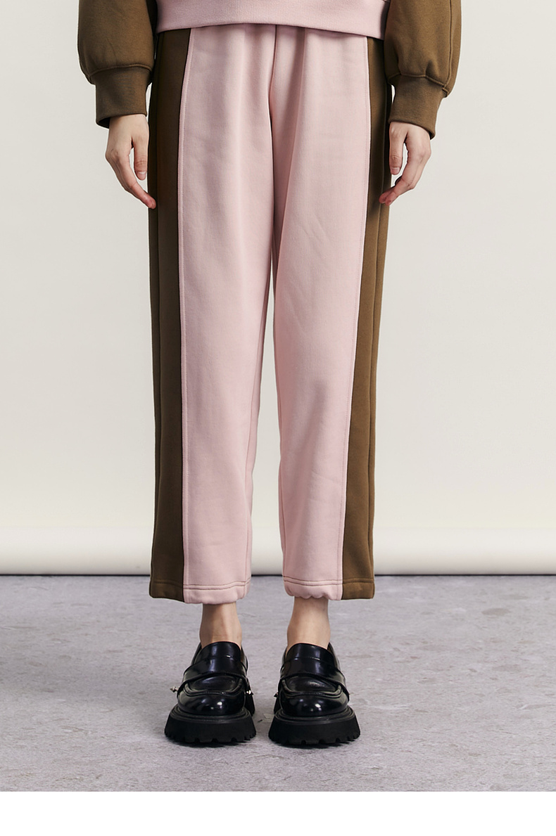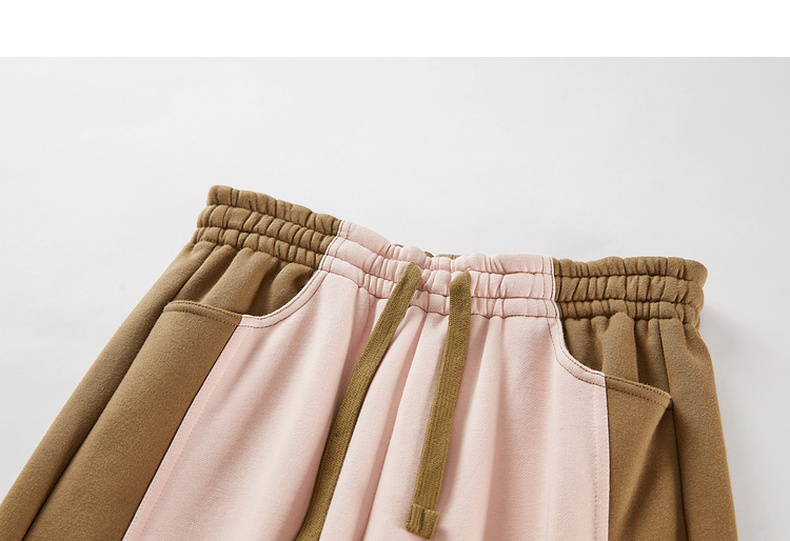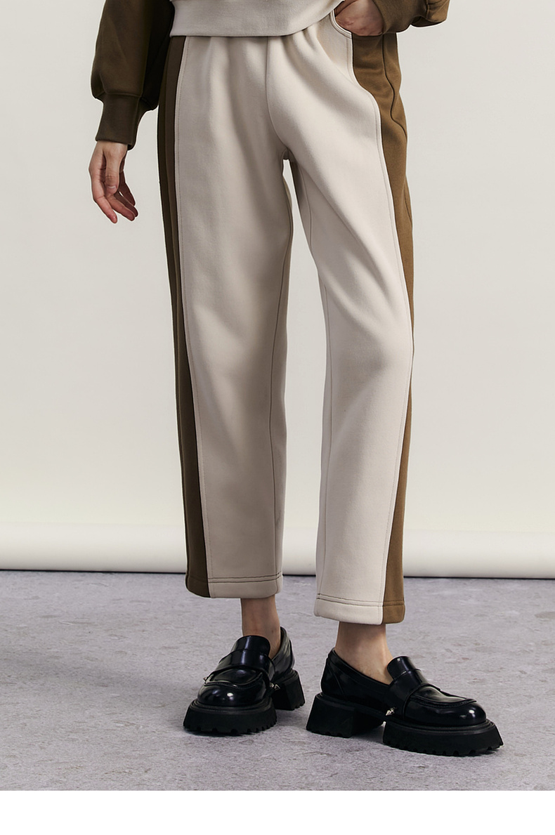 谜底拼色休闲裤女2023冬款时尚百搭宽松厚款直筒裤卫裤234MK1532