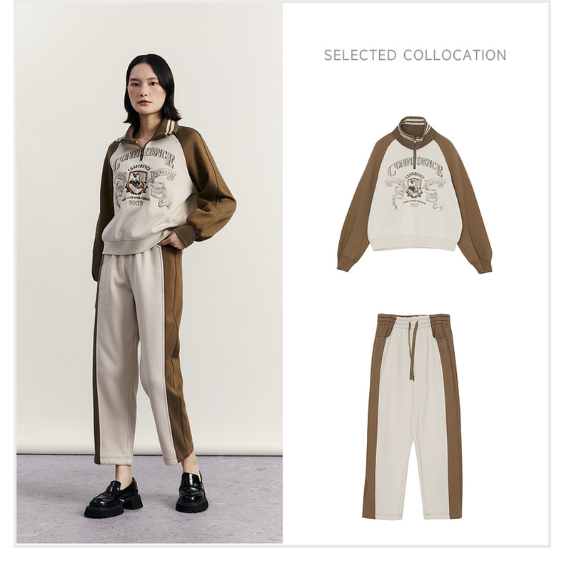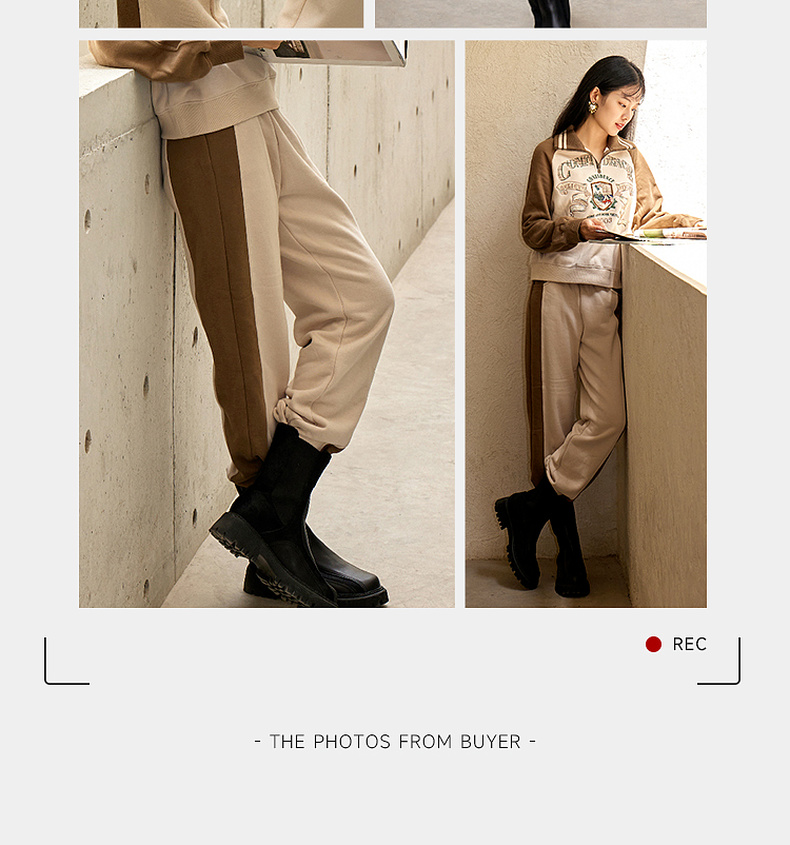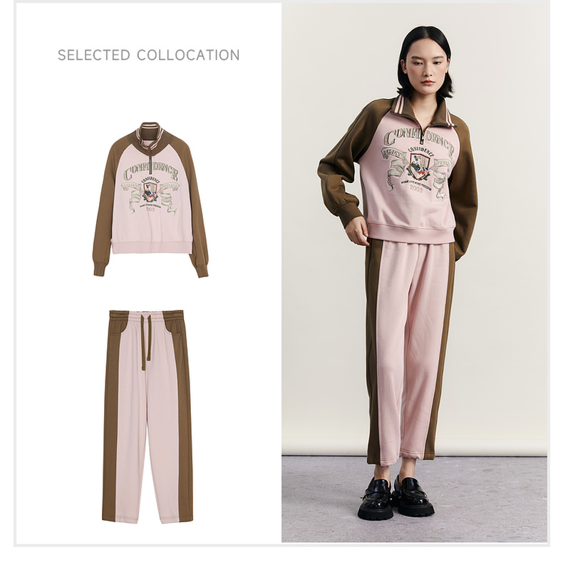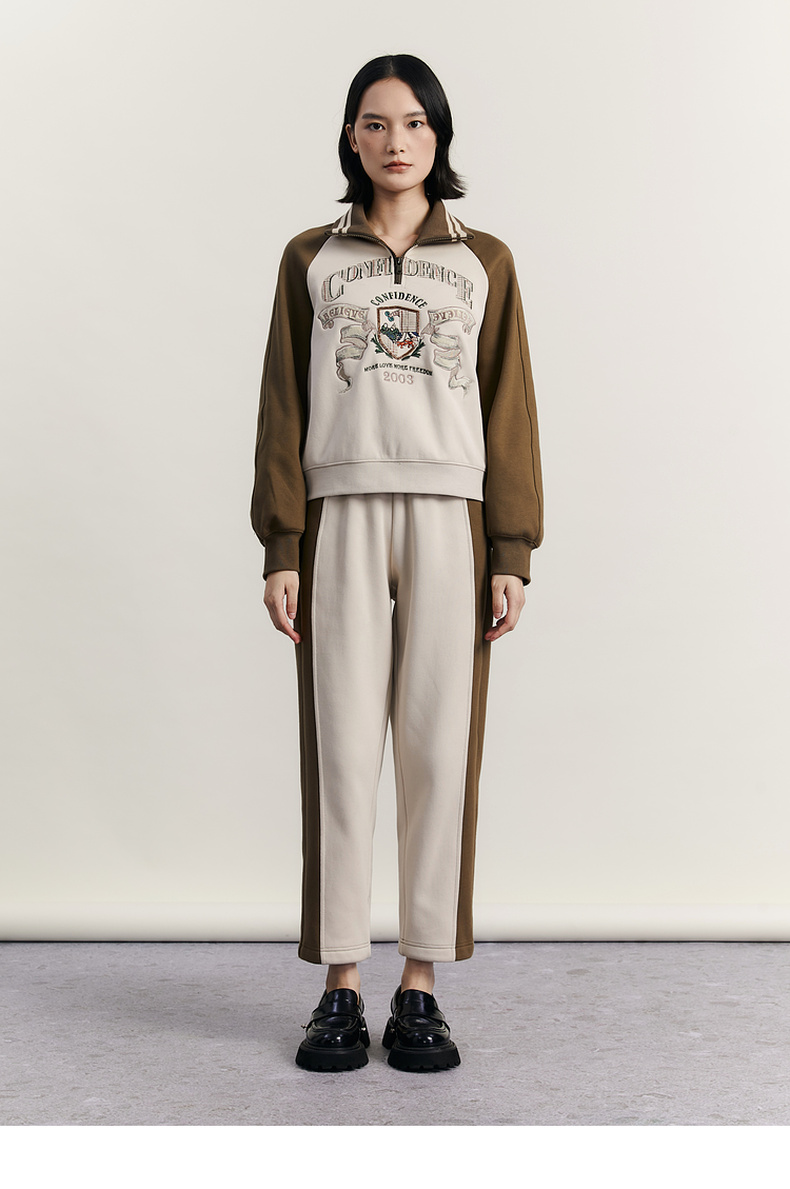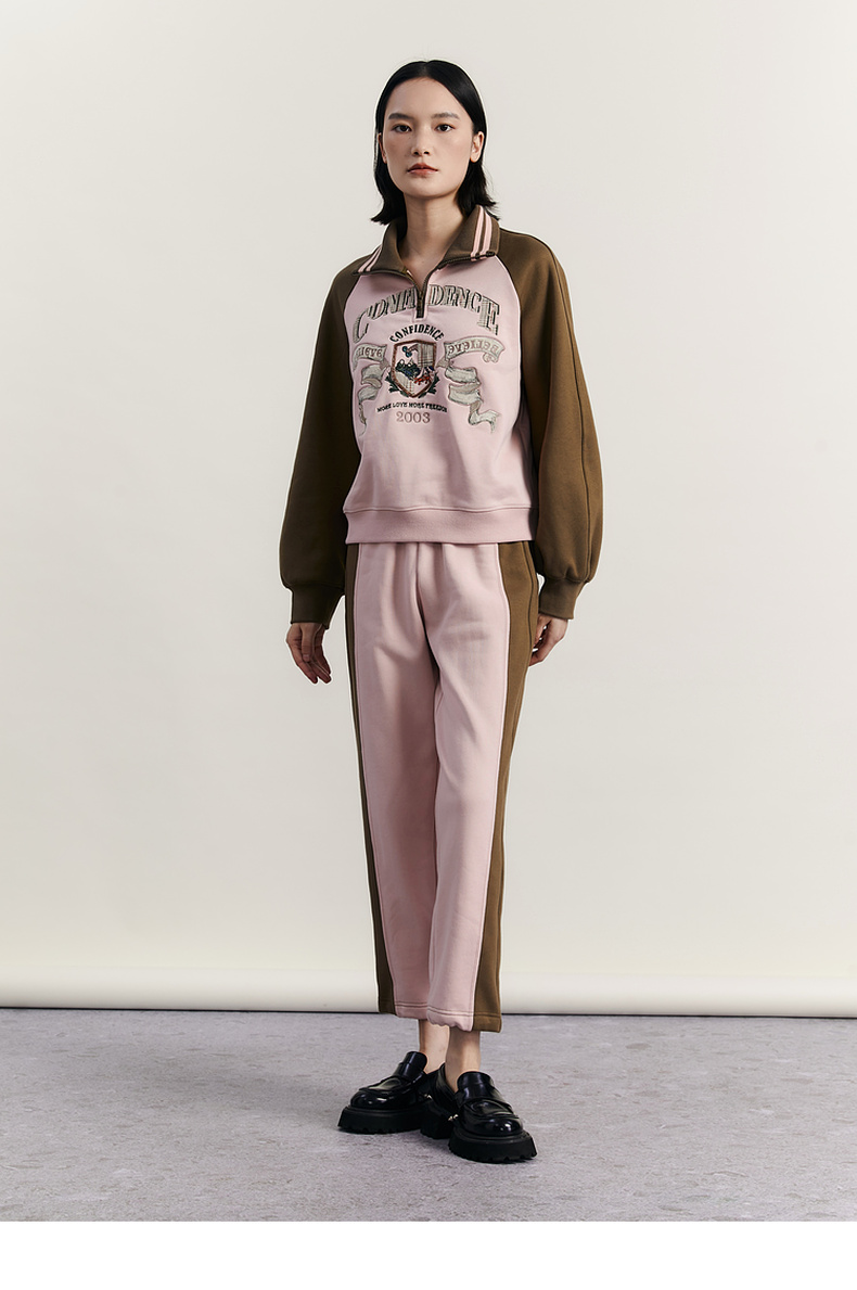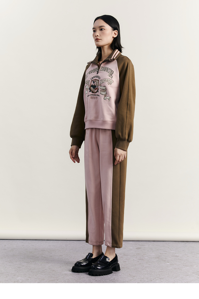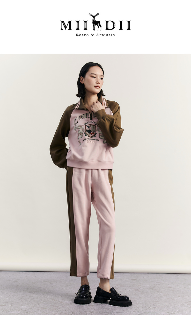 谜底拼色休闲裤女2023冬款时尚百搭宽松厚款直筒裤卫裤234MK1532