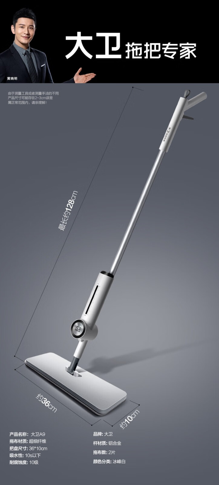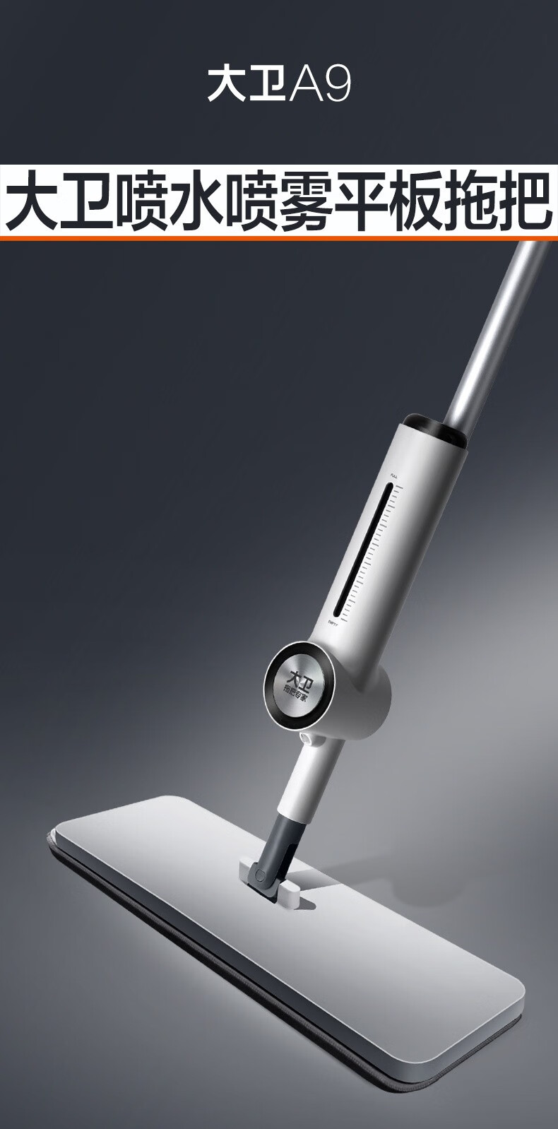 大卫 拖把 免手洗喷水拖把A9 一杆两头