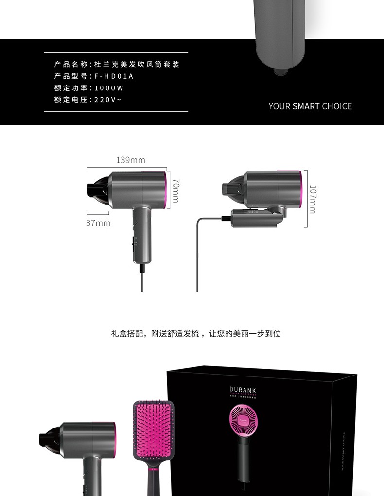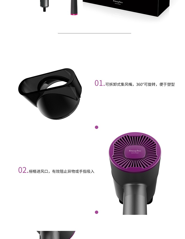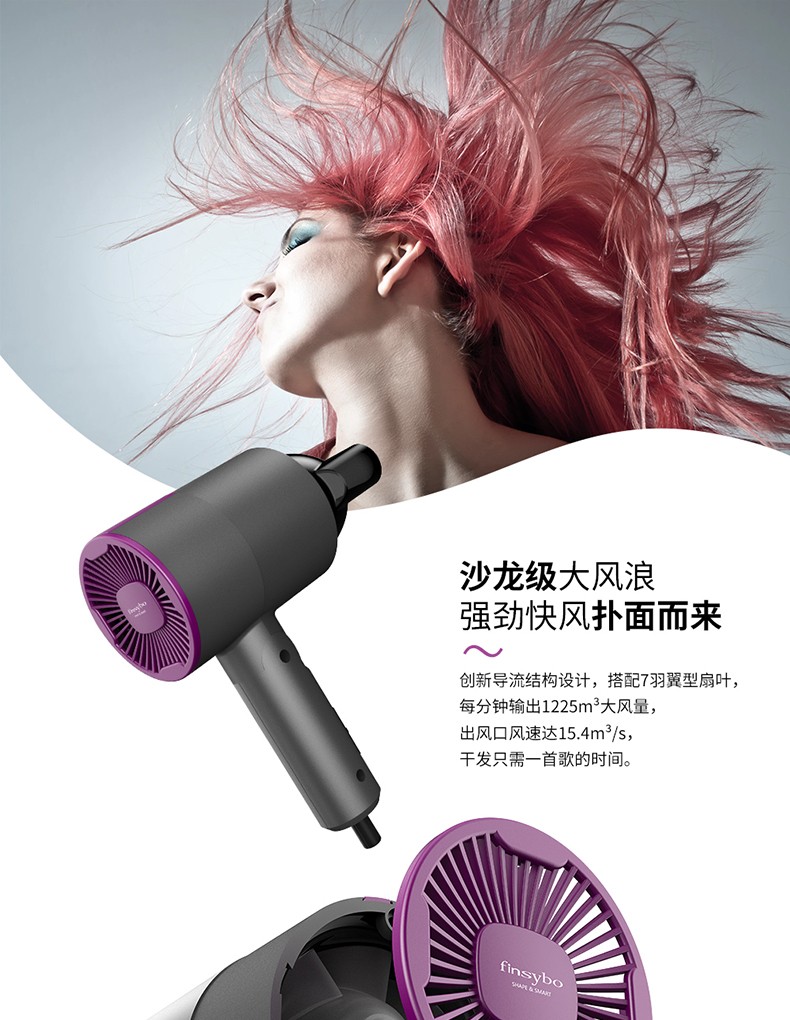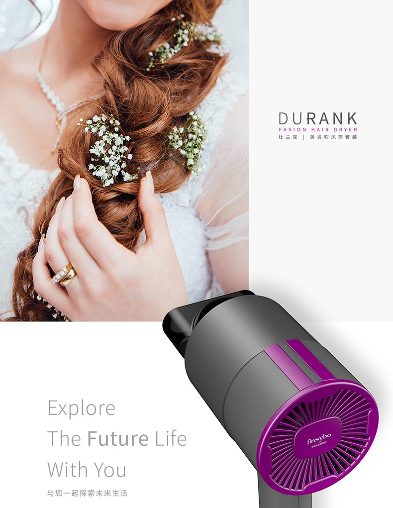 英国Finsybo菲斯宝 杜兰克吹风机美发吹风筒&气垫梳套装F-HD01A