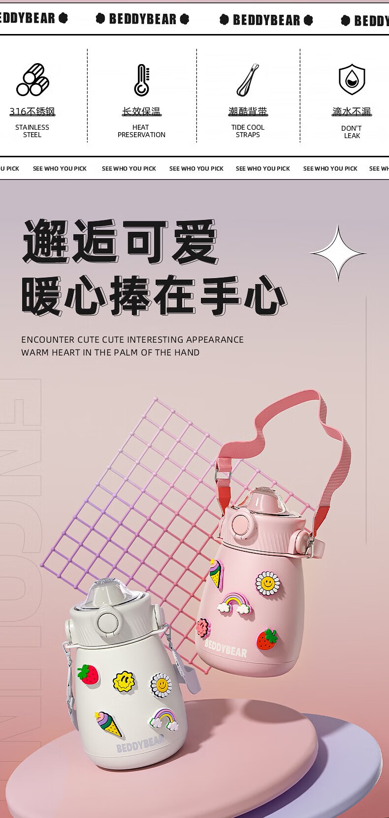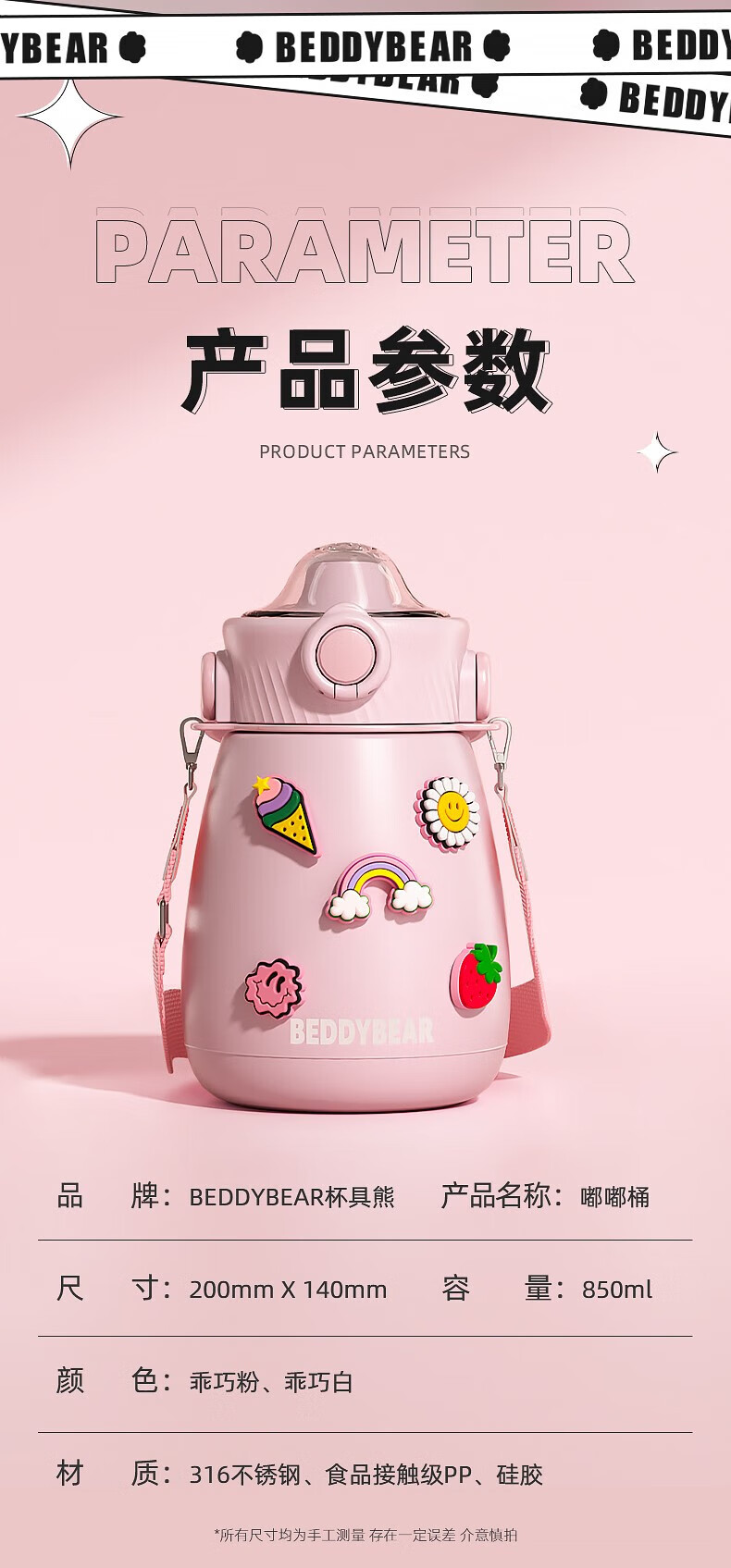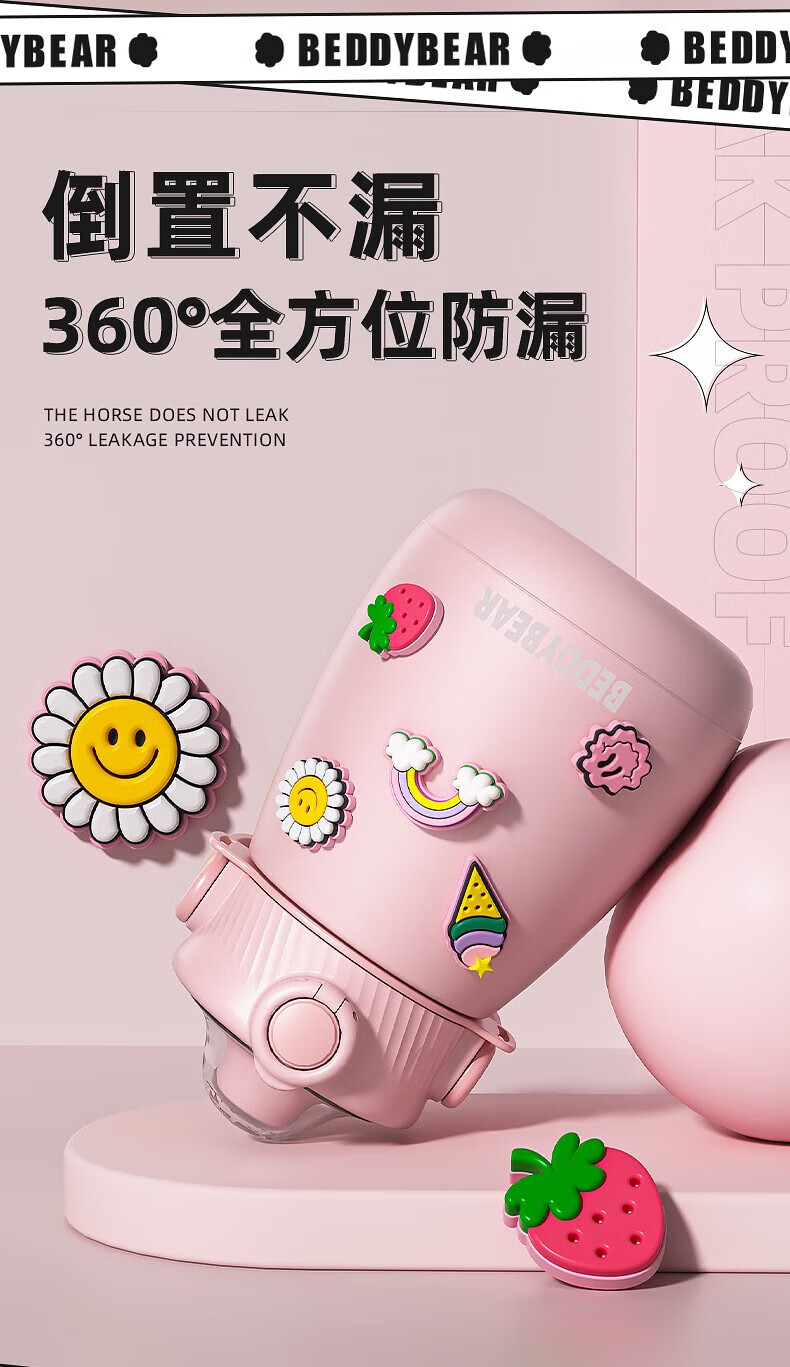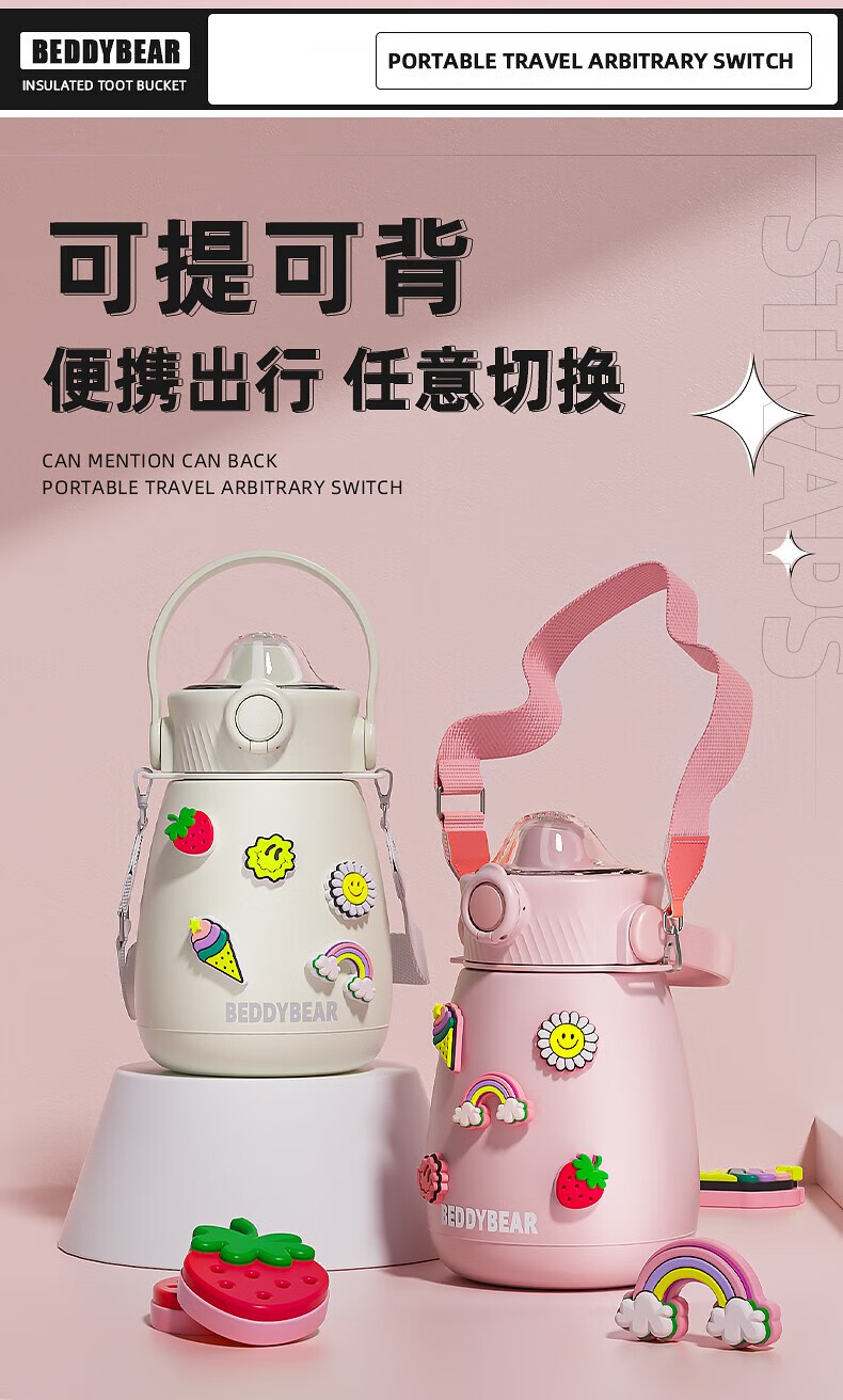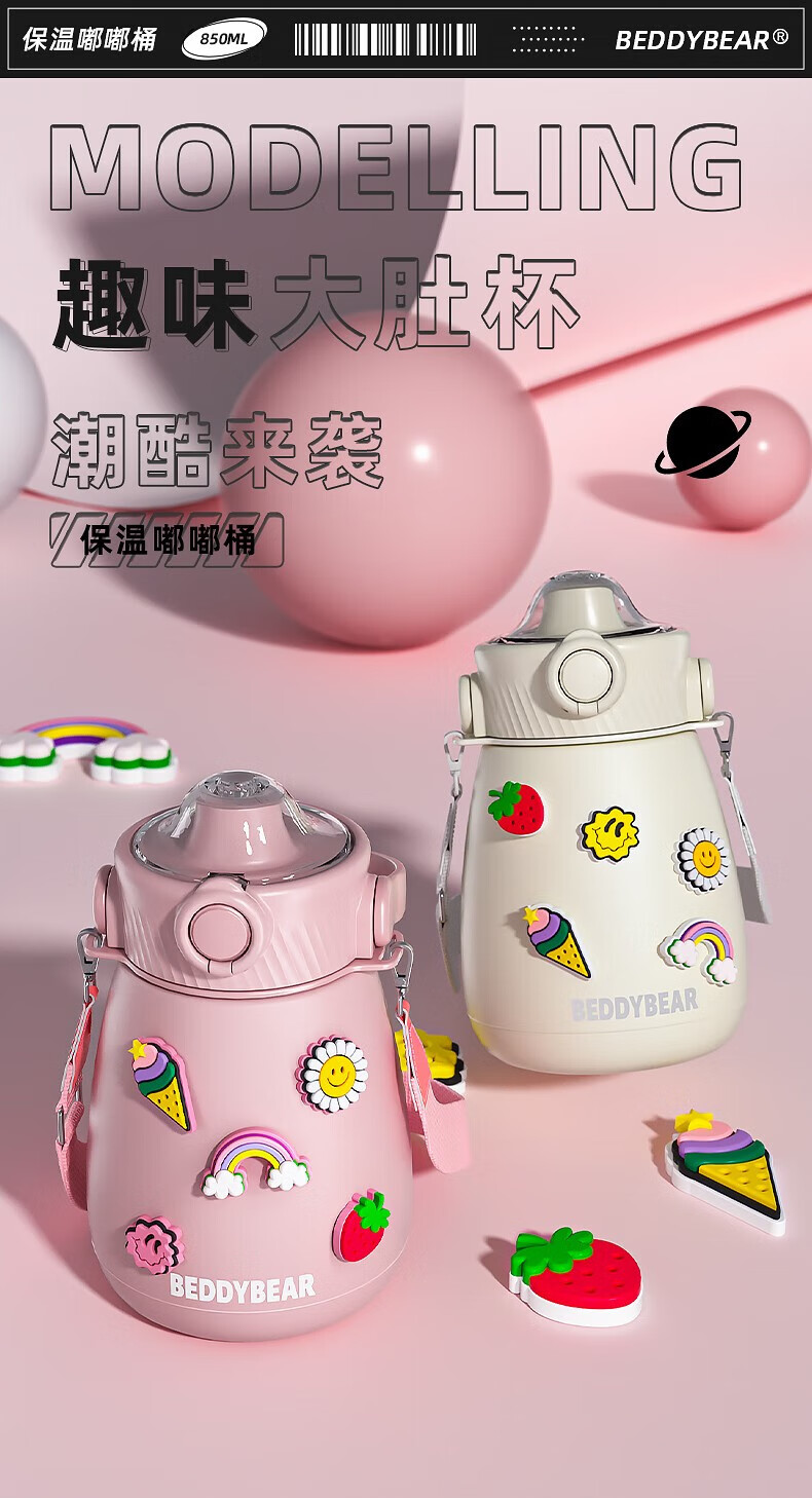 杯具熊 不锈钢大肚保温杯吸管杯户外水杯儿童水壶 850ml