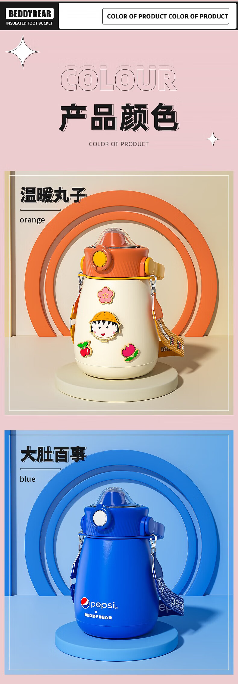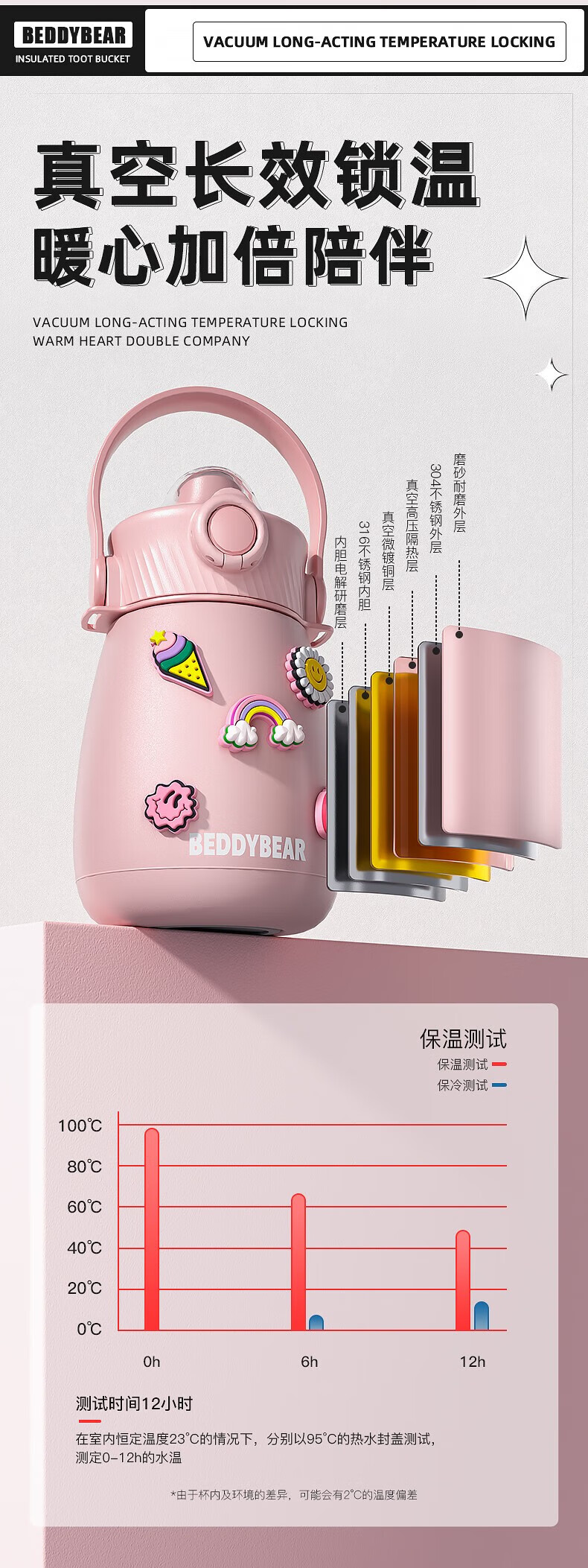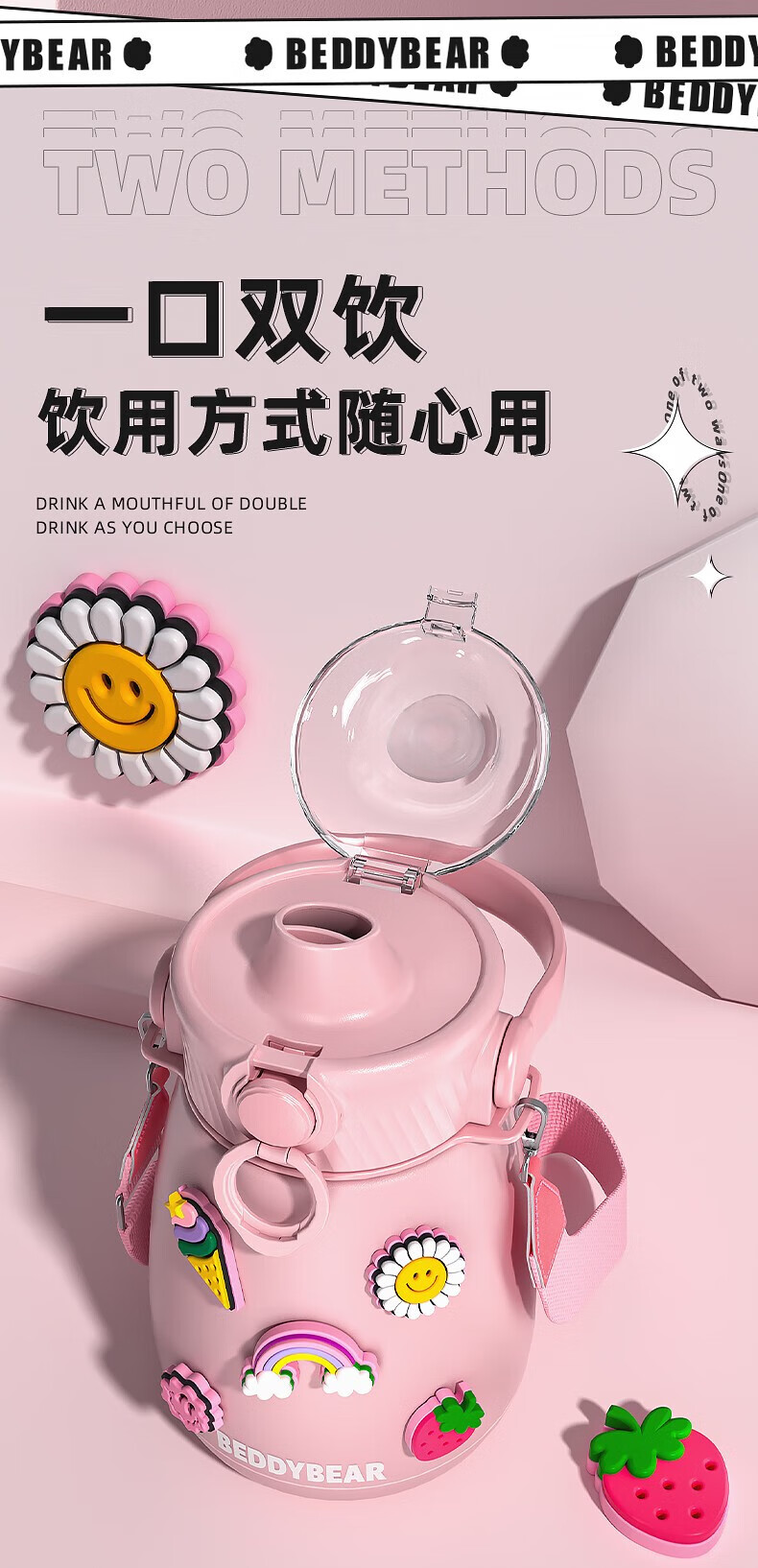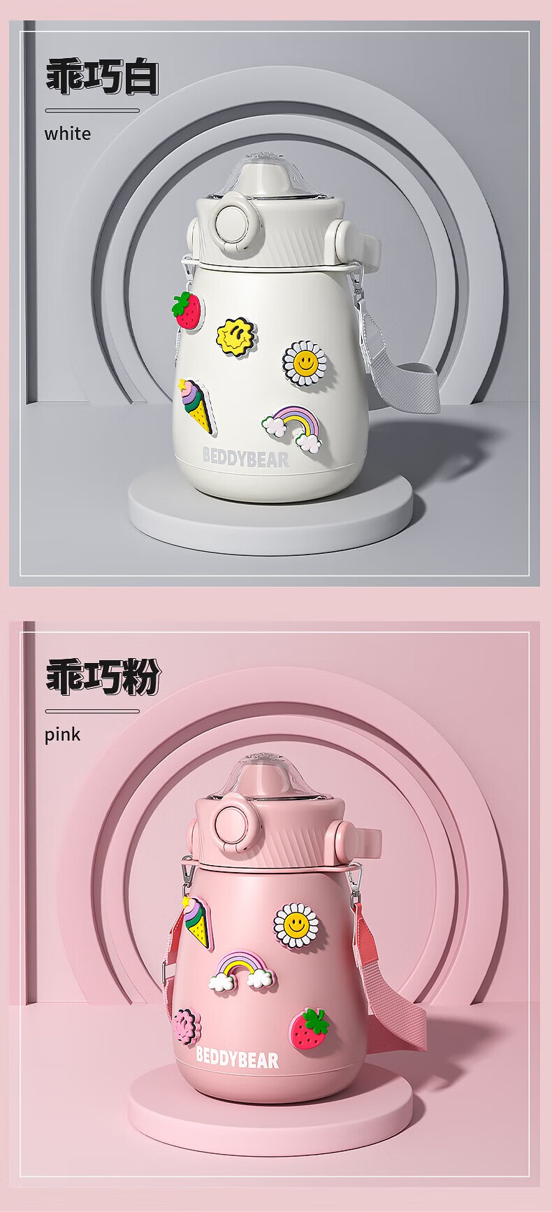 杯具熊 不锈钢大肚保温杯吸管杯户外水杯儿童水壶 850ml