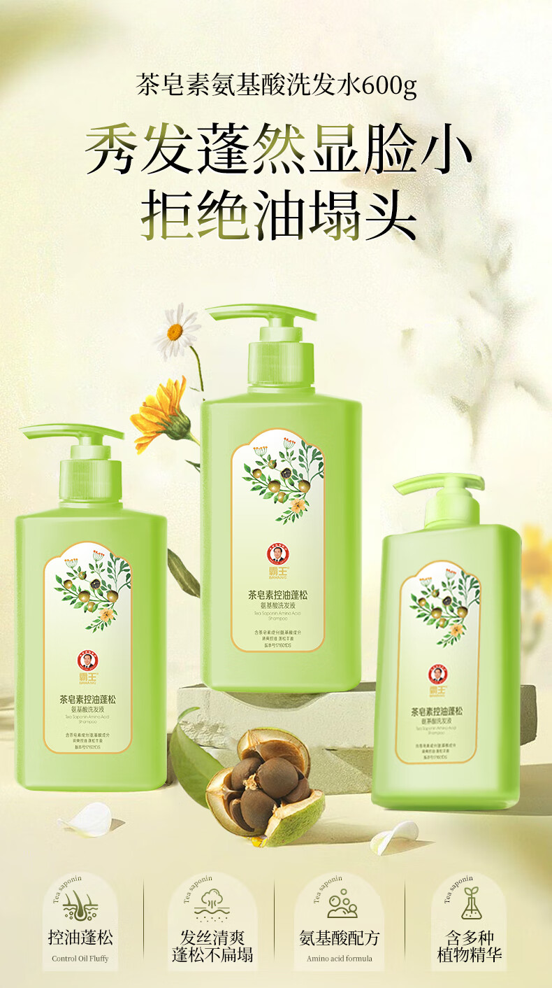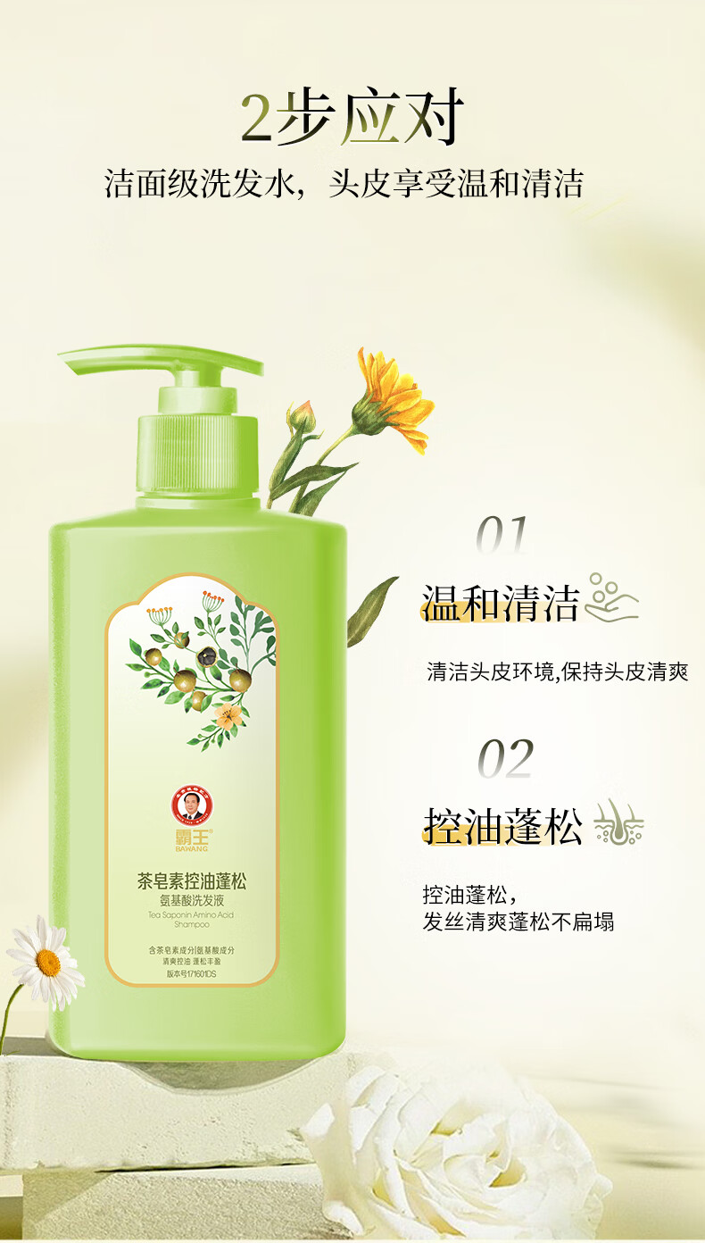 霸王 茶皂素控油蓬松氨基酸洗发液600g 10101022332