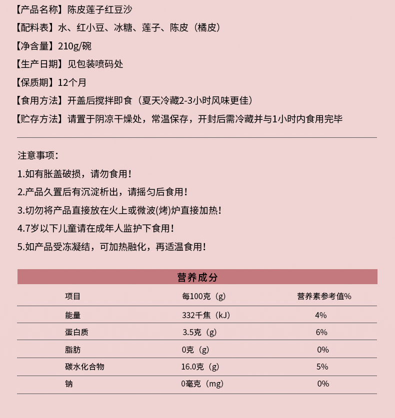 滋时五年陈皮莲子红豆沙(加量装)210gF