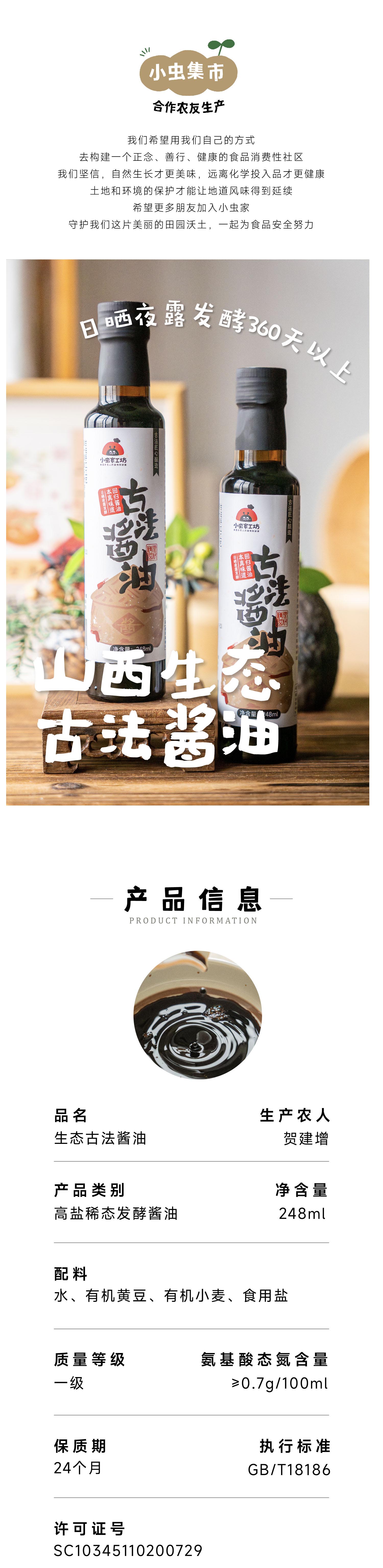 山西生态古法酱油 248ml*2瓶 | 合作农友生产,来自山西太谷,生产者:贺健增 &【公平贸易农人定价】