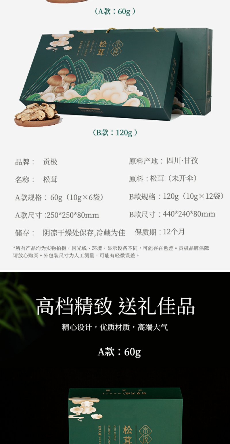 贡极 心止松茸干货礼盒未开伞雅江松茸菌菇 心止礼盒60g