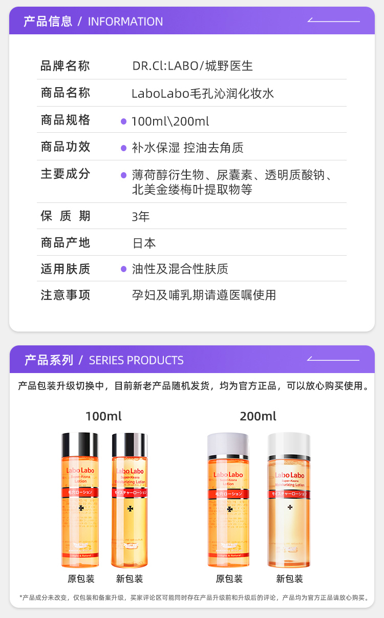 【保税仓】城野医生控油收缩毛孔化妆水100ml、200ml/瓶
