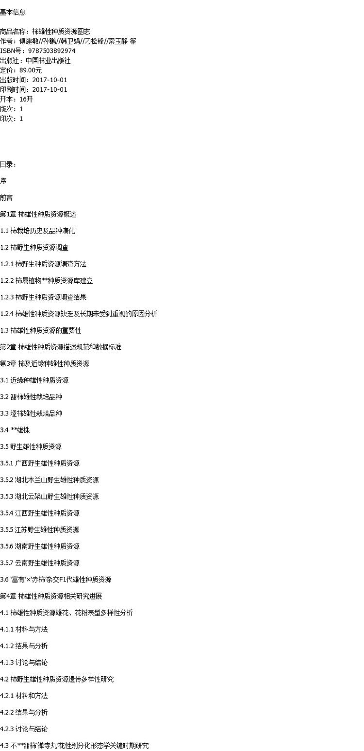 柿雄性种质资源图志 9297 中国林业出版社 畅销书