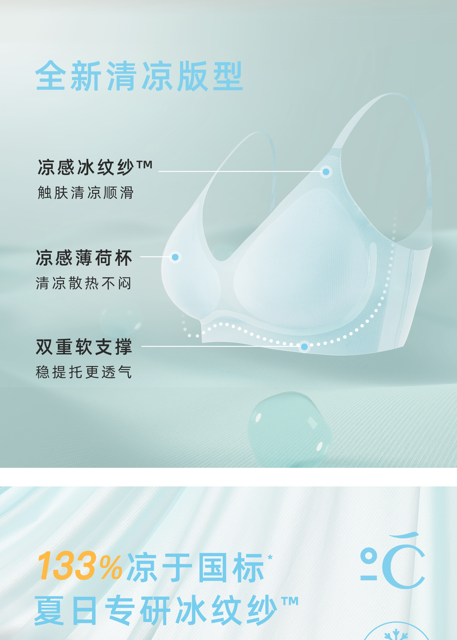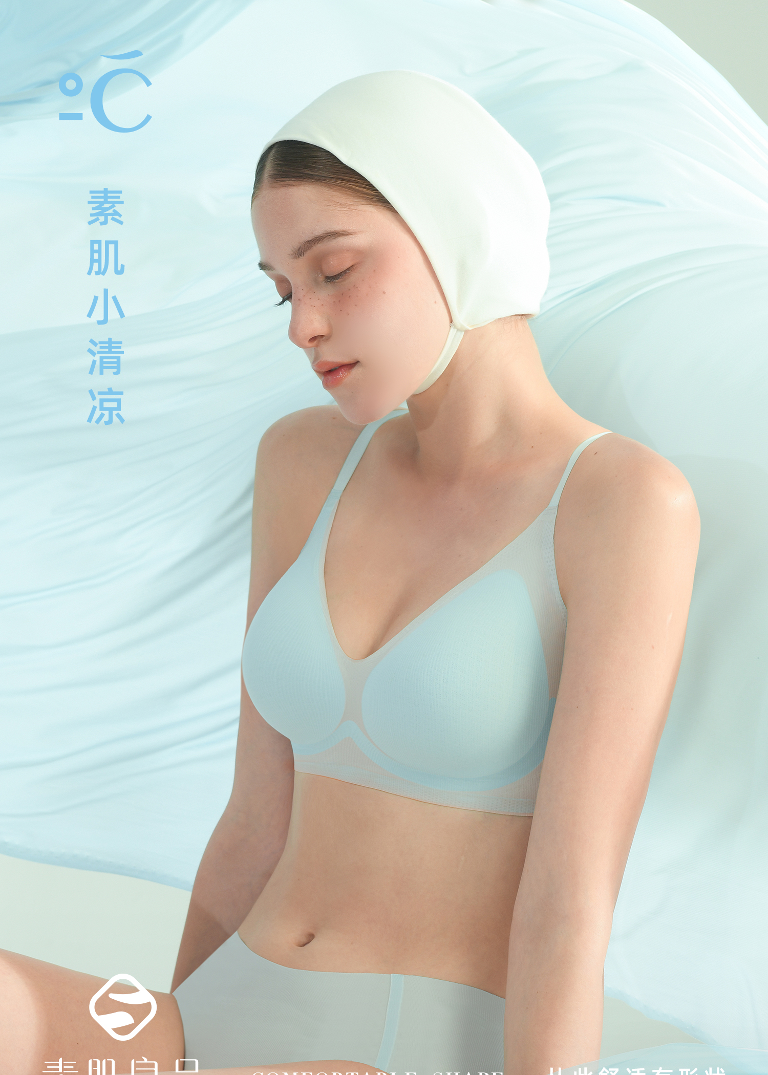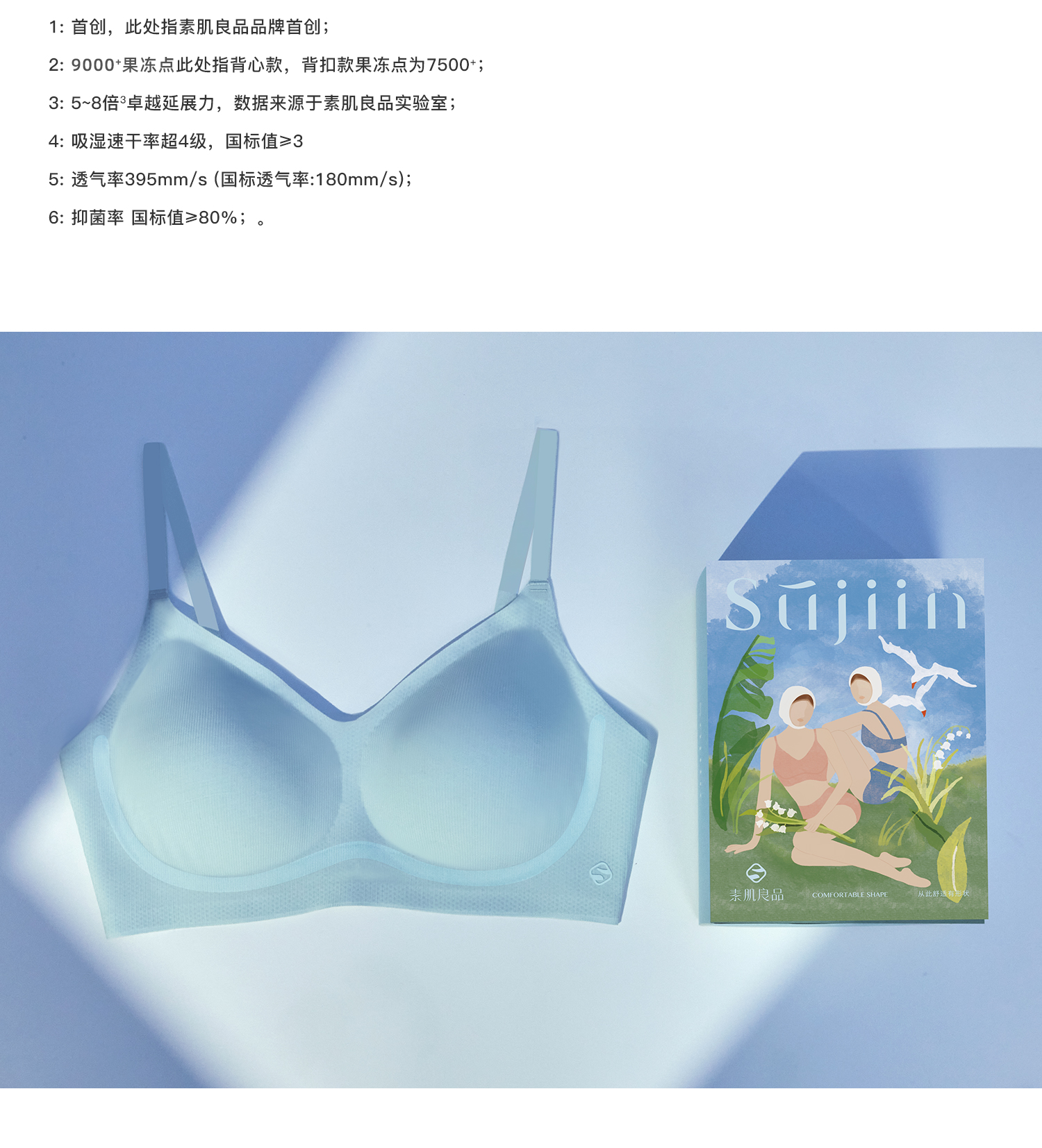 素肌良品小清凉果冻条内衣女夏季薄款无痕无钢圈u型美背文胸MX175
