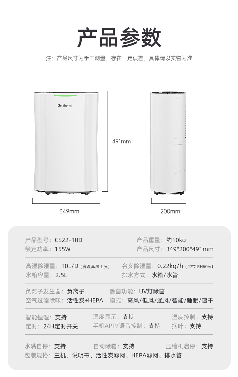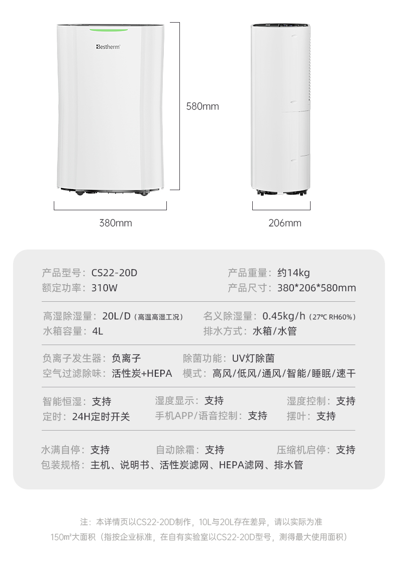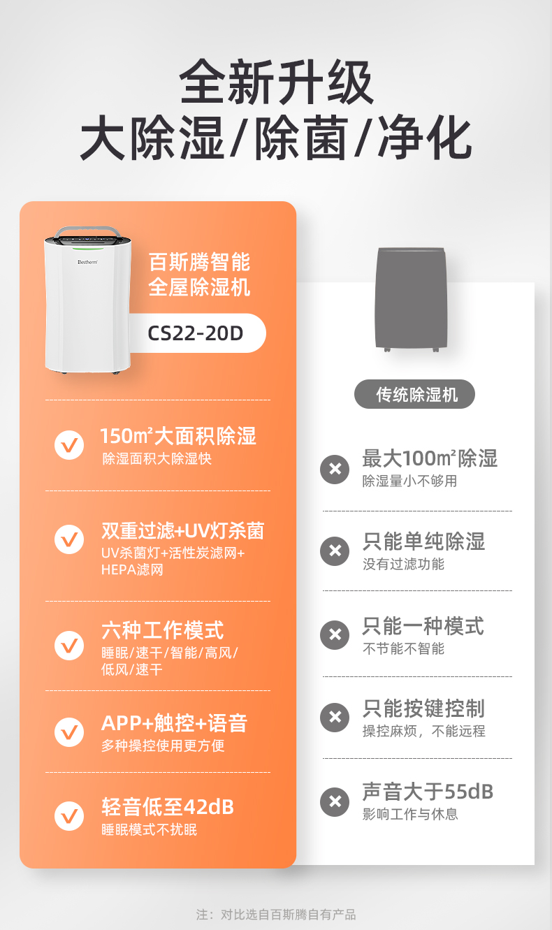 【Besterm百斯腾智能除湿机】 大面积全屋循环抽湿机 除湿净化一台搞定