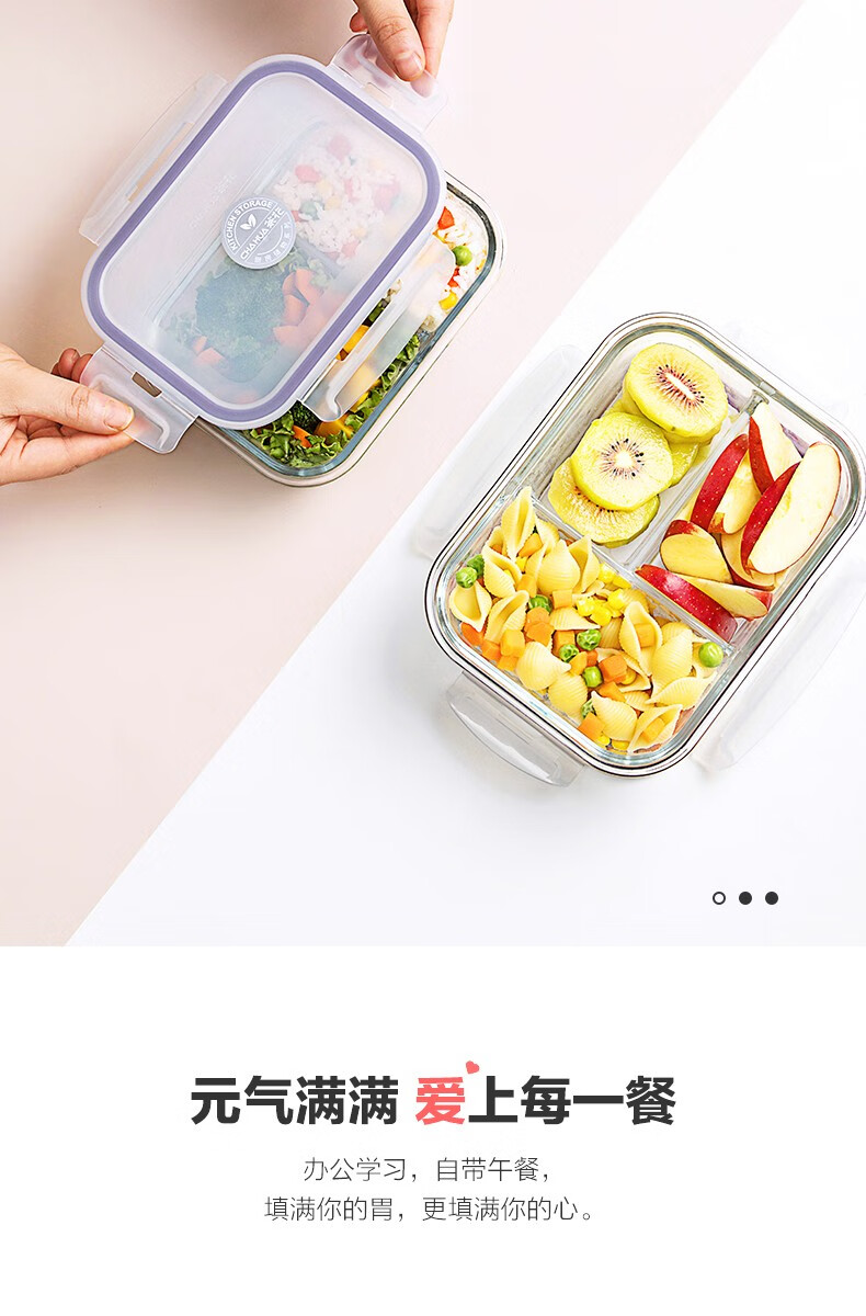 茶花 饭盒 晶格玻璃饭盒650mL/1000ml