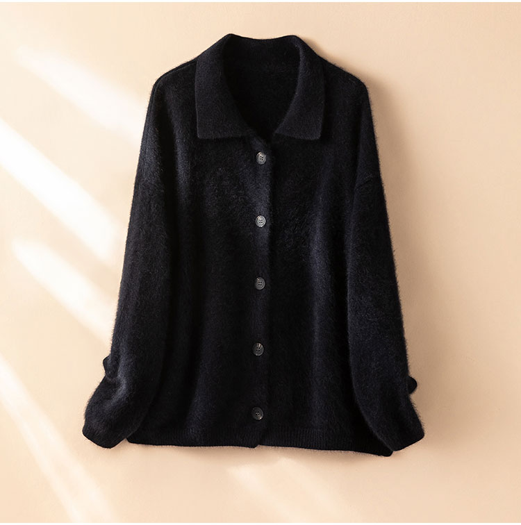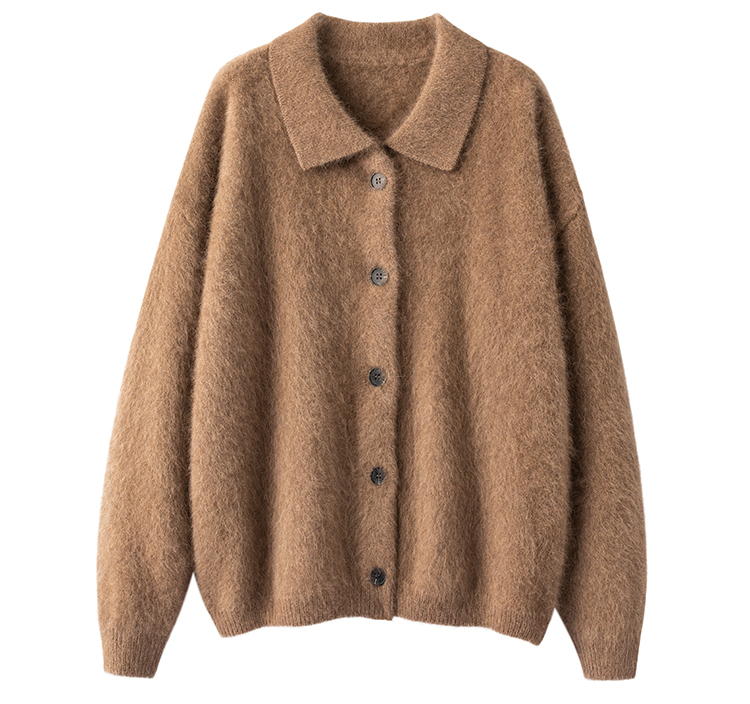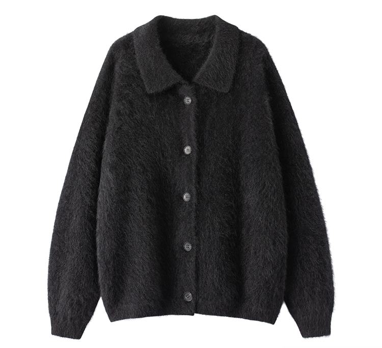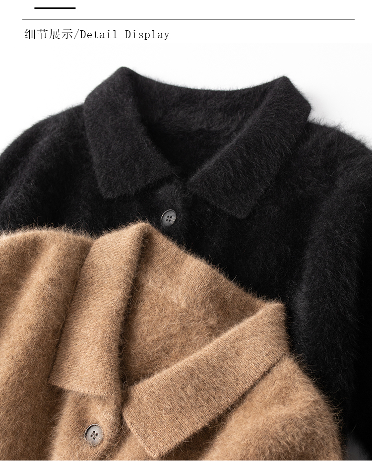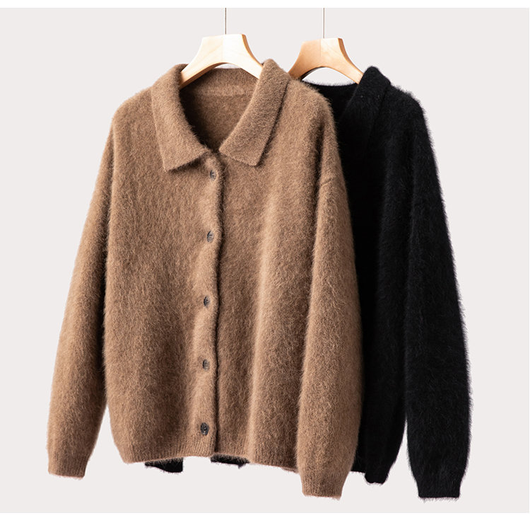 北美小动物毛毛!针织开衫时髦polo领加厚外套女上衣