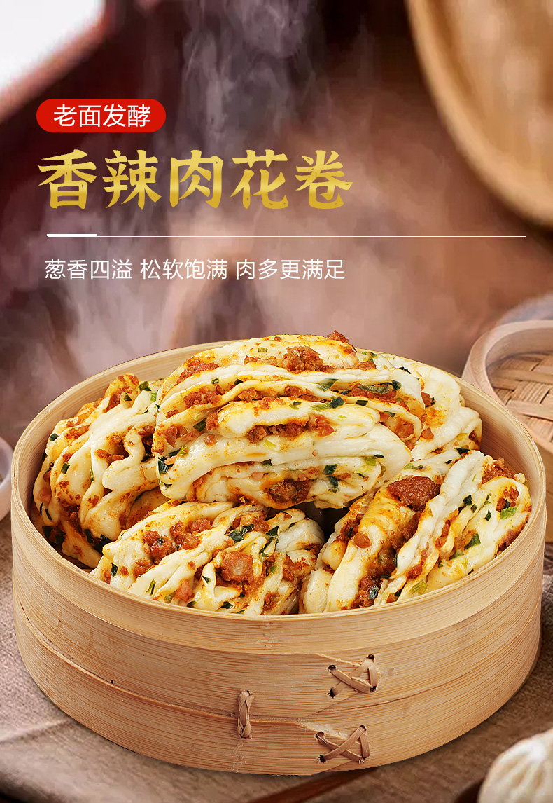 香辣肉花卷馒头速食早餐半成品480g*2袋