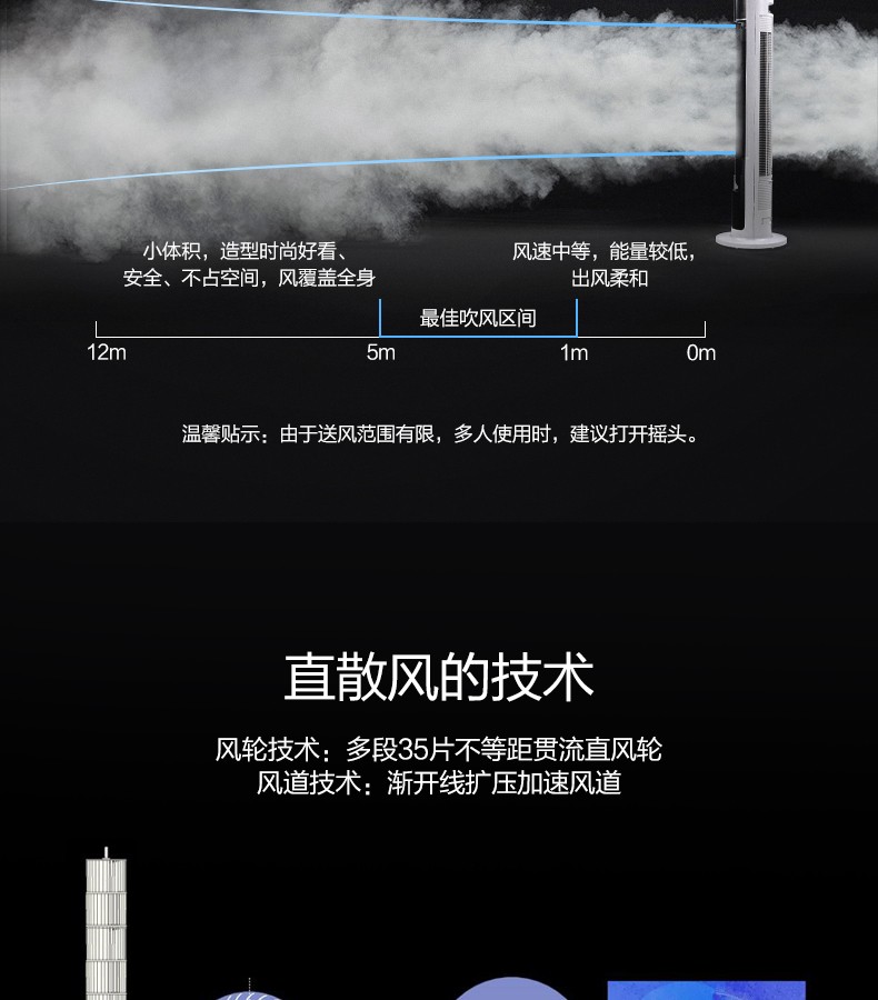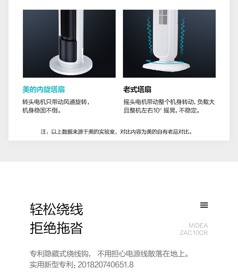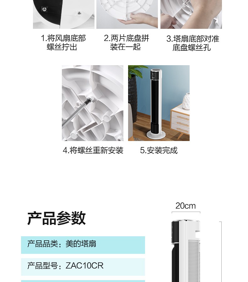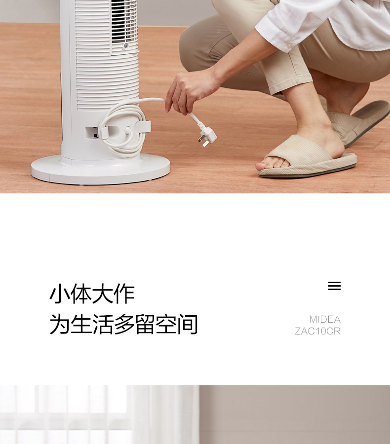 美的电风扇家用遥控塔扇客厅卧室立式无叶扇摇头静音风扇 ZAC10CR