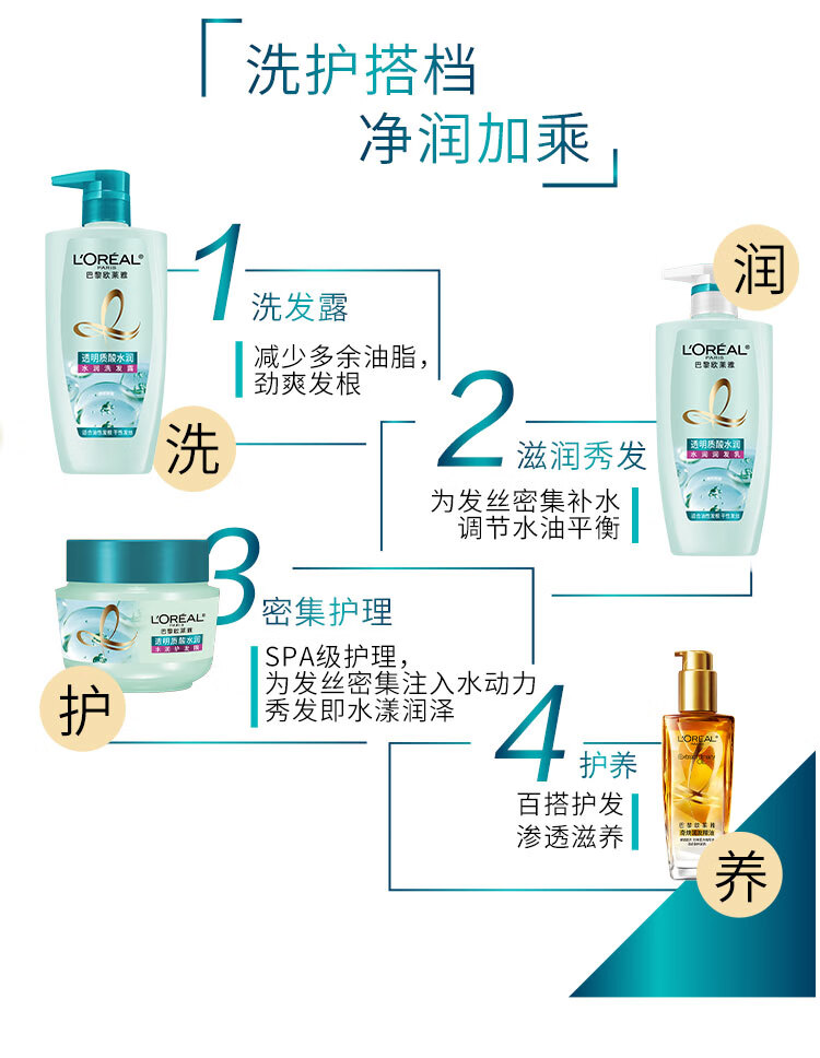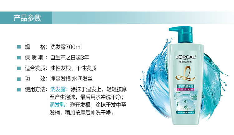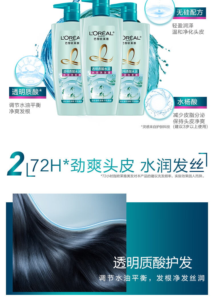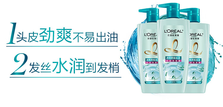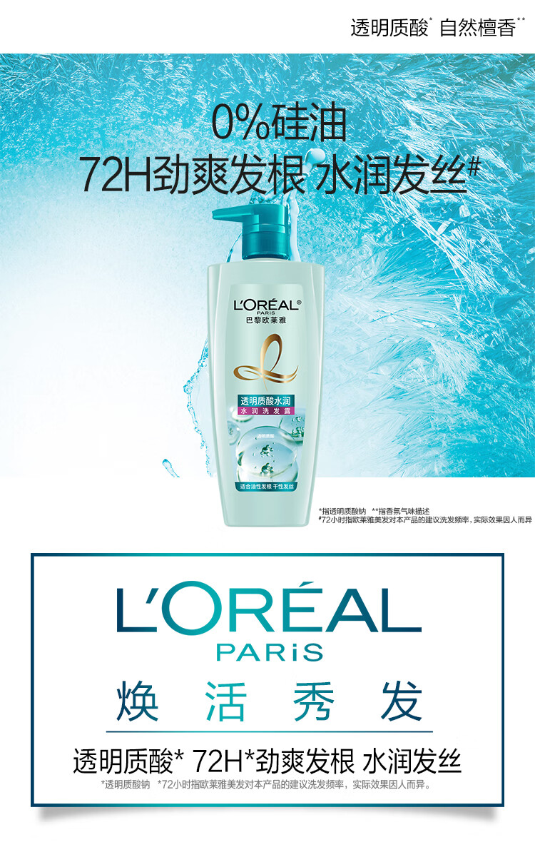 欧莱雅 透明质酸水润去屑无硅油洗发露700ml(透明水润)