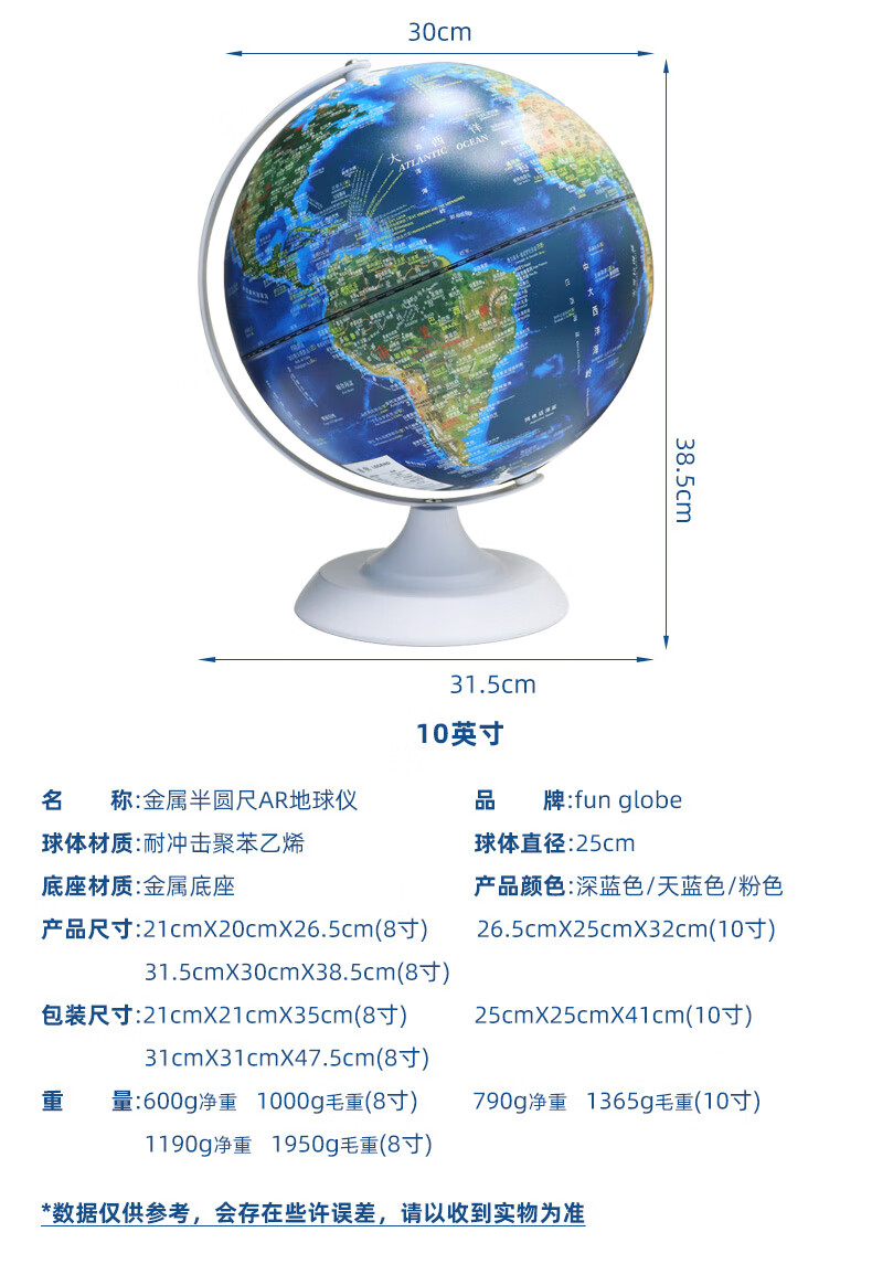 FunGlobe 朋宸地球仪 AR 金属底座触控夜灯地球仪 M3公主粉