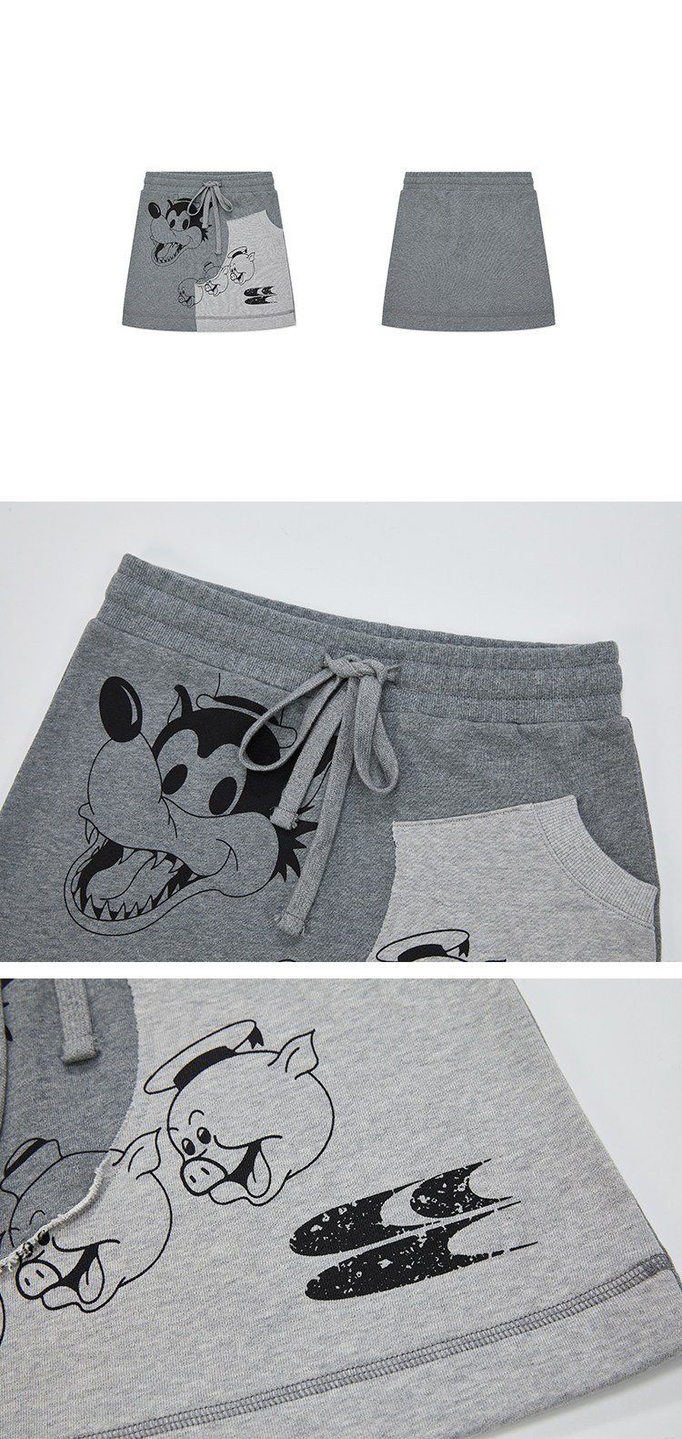 CryingCenter 三只小猪双色拼接款 女生休闲半裙 哭喊中心