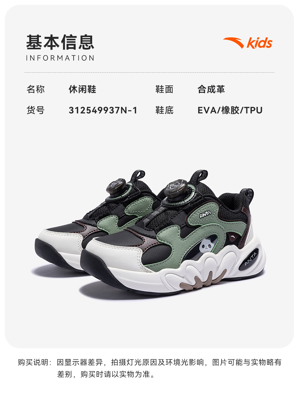 安踏儿童男小童休闲鞋2025冬新款舒适防滑耐磨儿童旋钮童鞋墩墩鞋312549937N