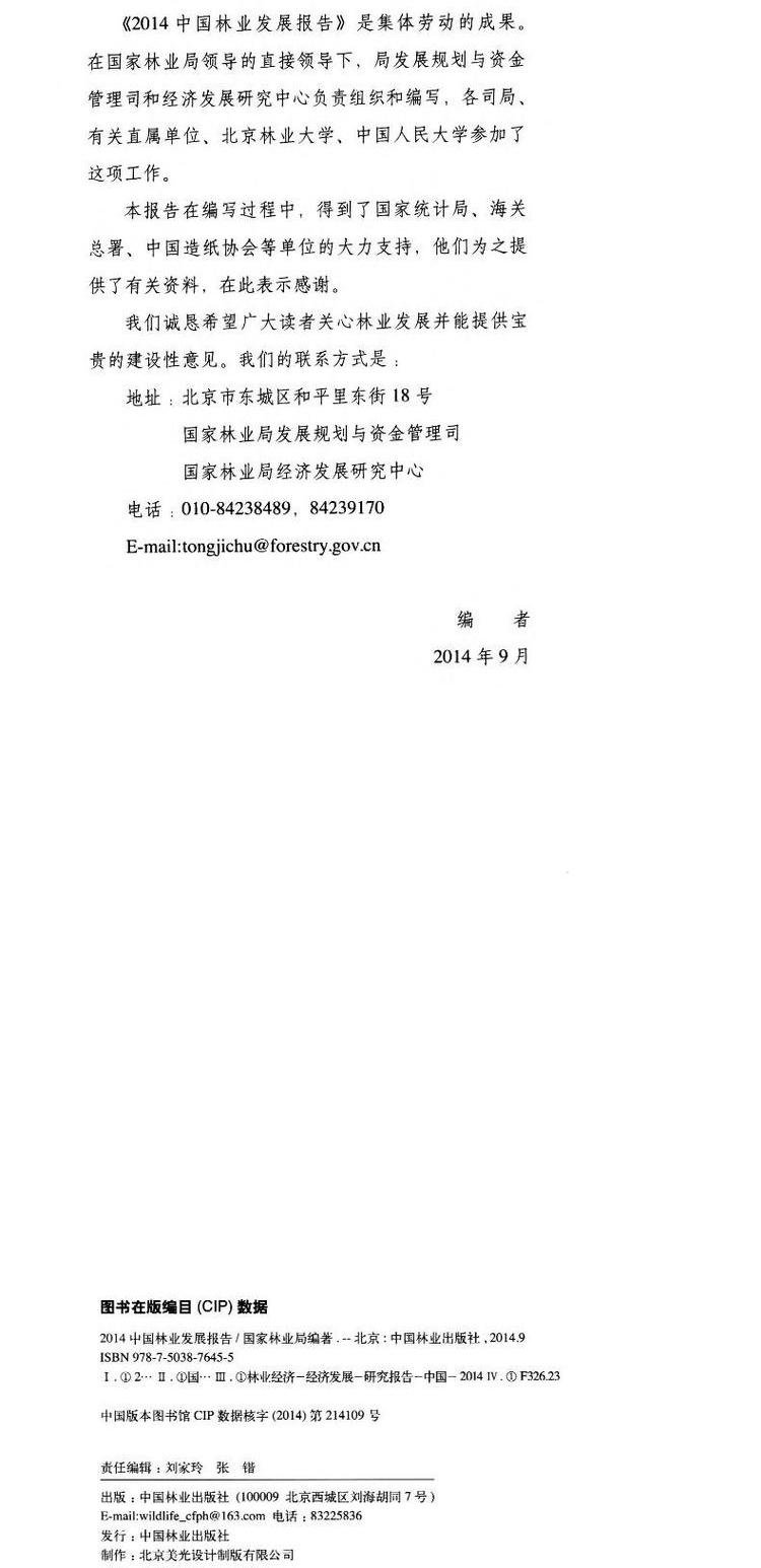 2014中国林业发展报告 中文版 中国林业出版社官方自营店 正版畅销书科技7645