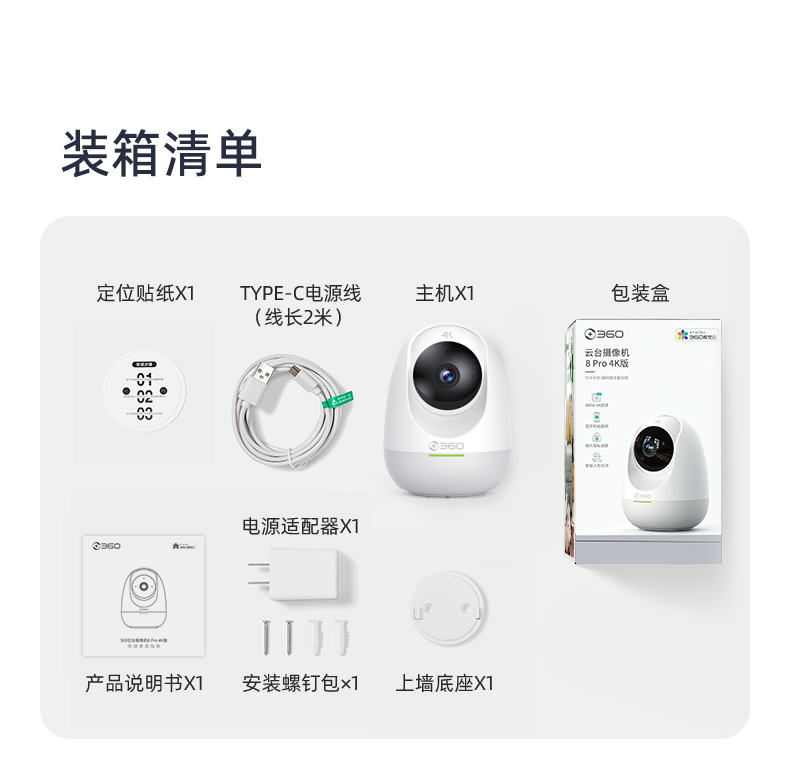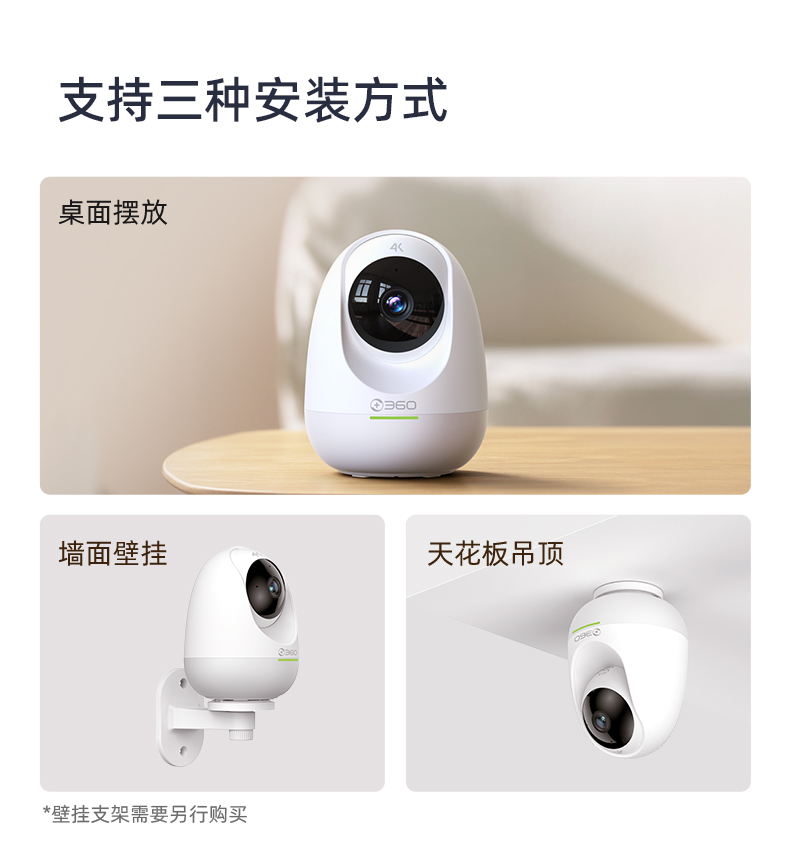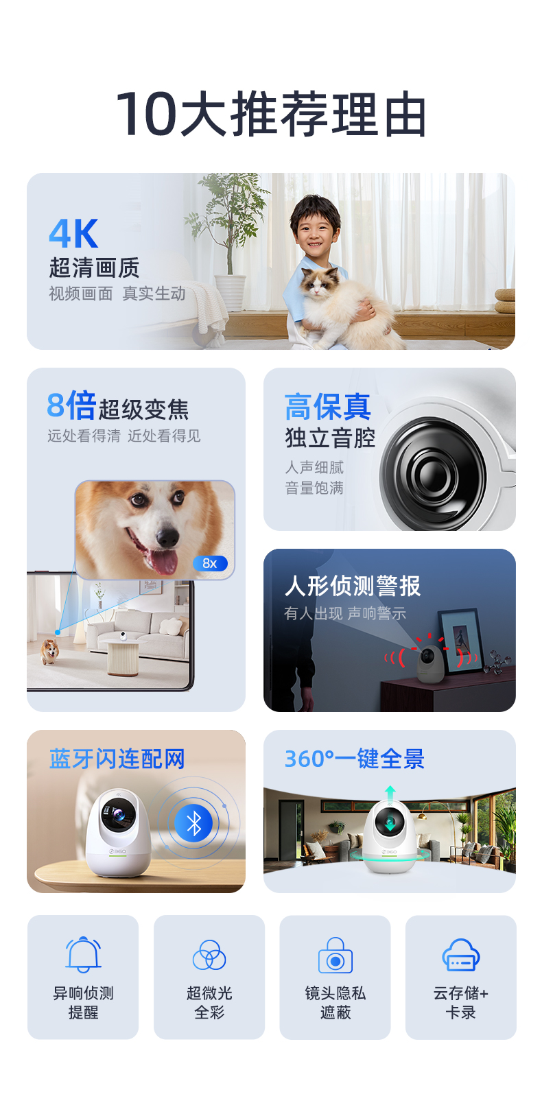 【采购】360云台摄像机8Pro 4K 超清画质 星光级超微光全彩 360°全景视角 蓝牙闪连配网 人形侦测警报 镜头隐私遮蔽