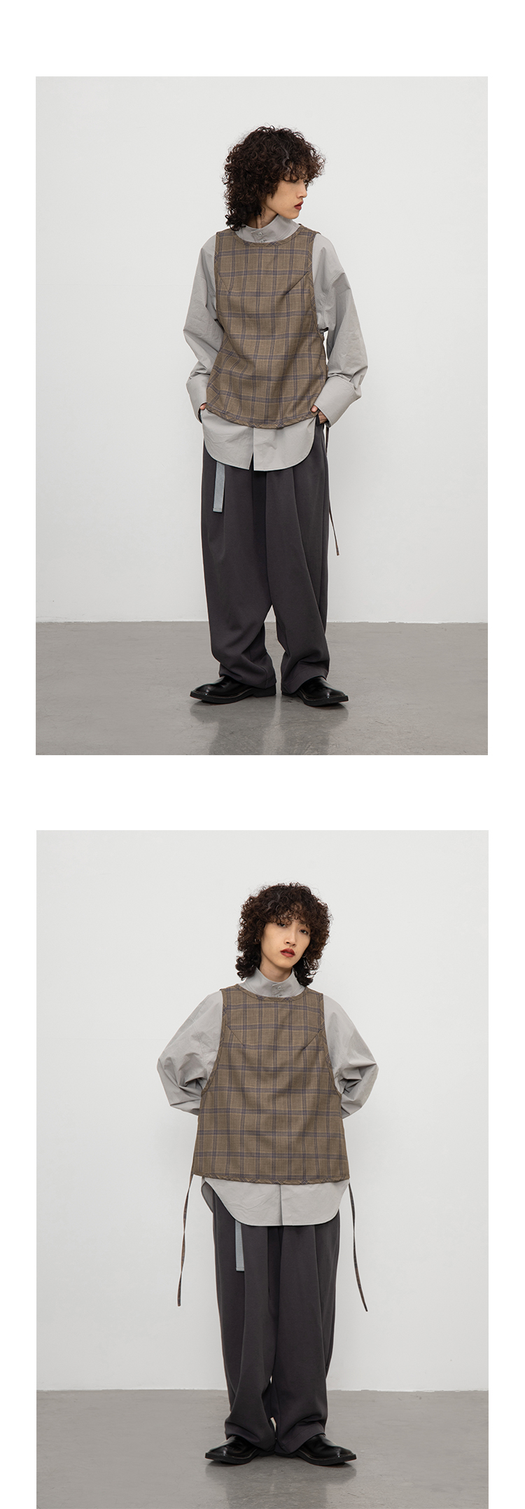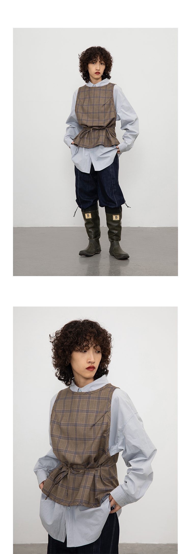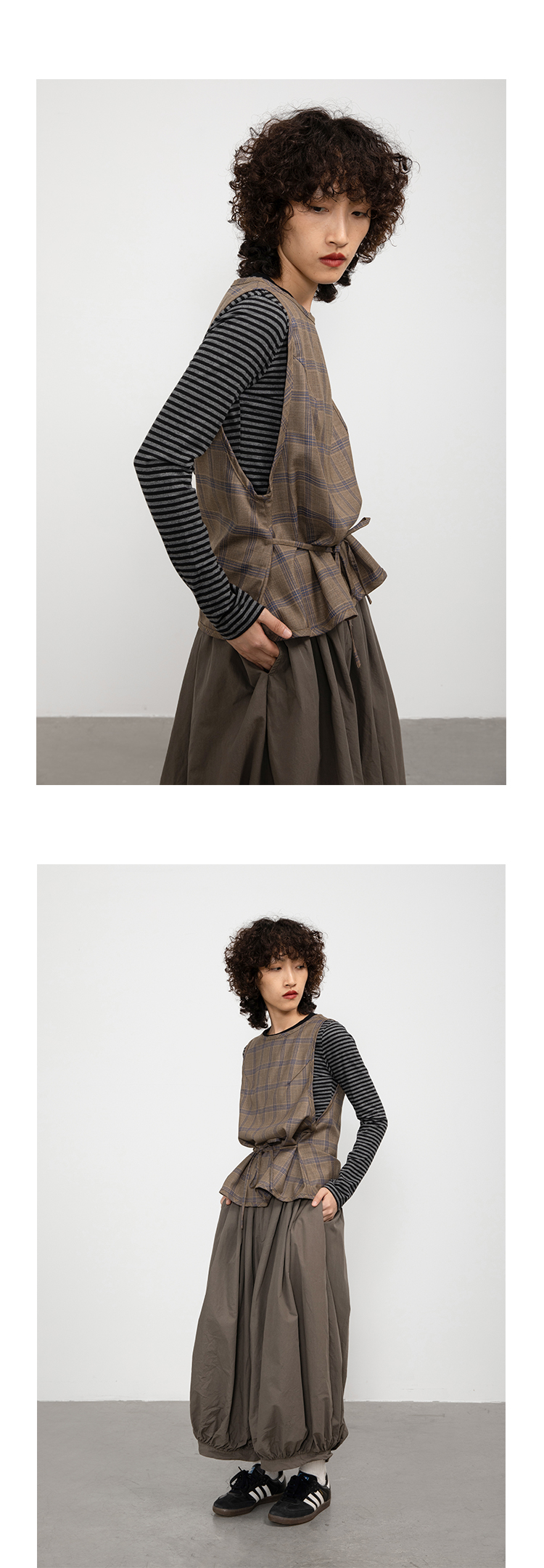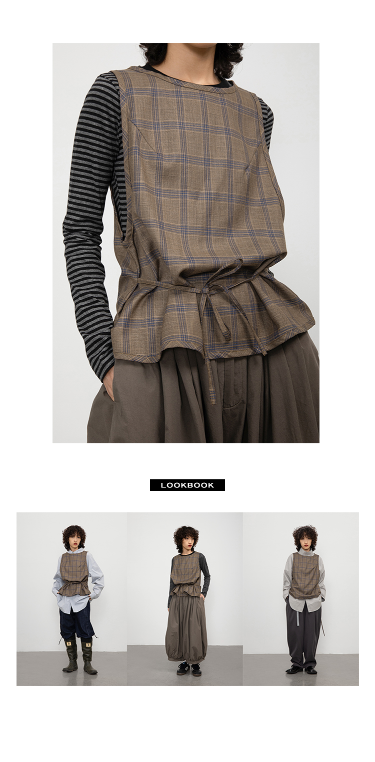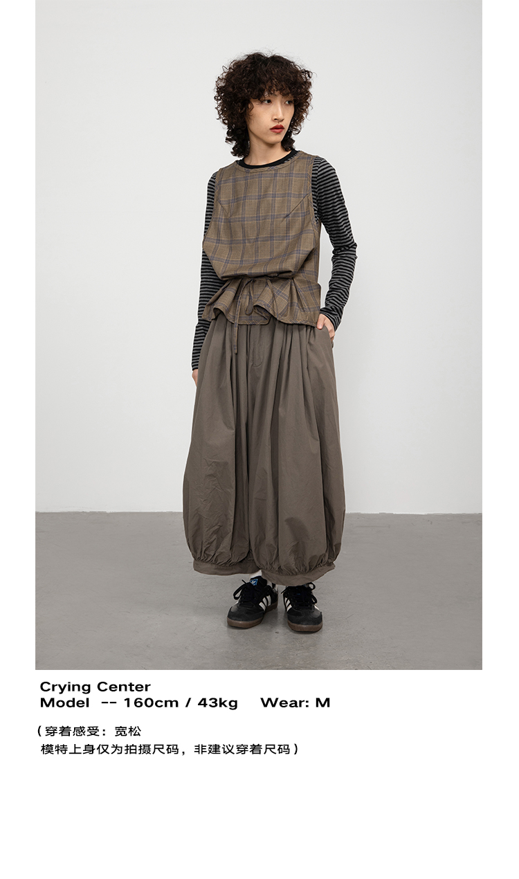 CryingCenter 复古棕色格纹背心 直筒/收腰荷叶边两穿 哭喊中心