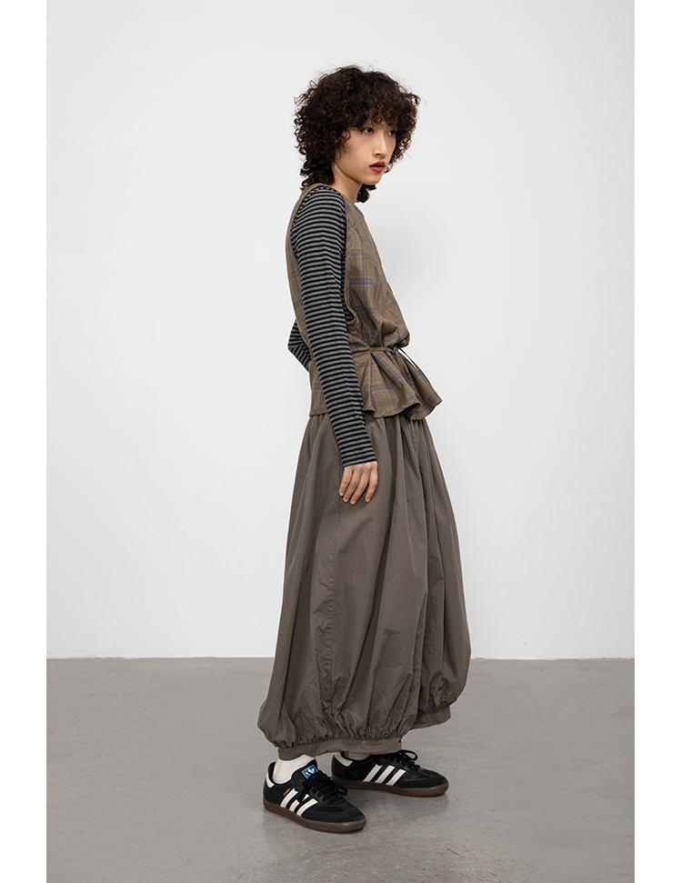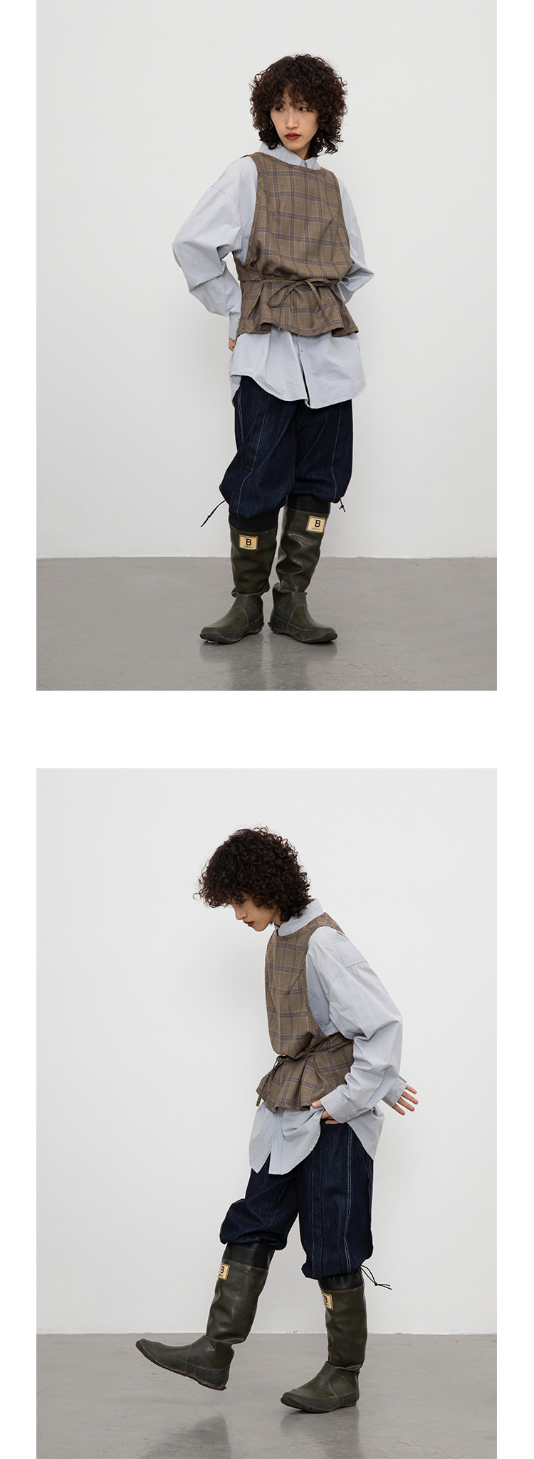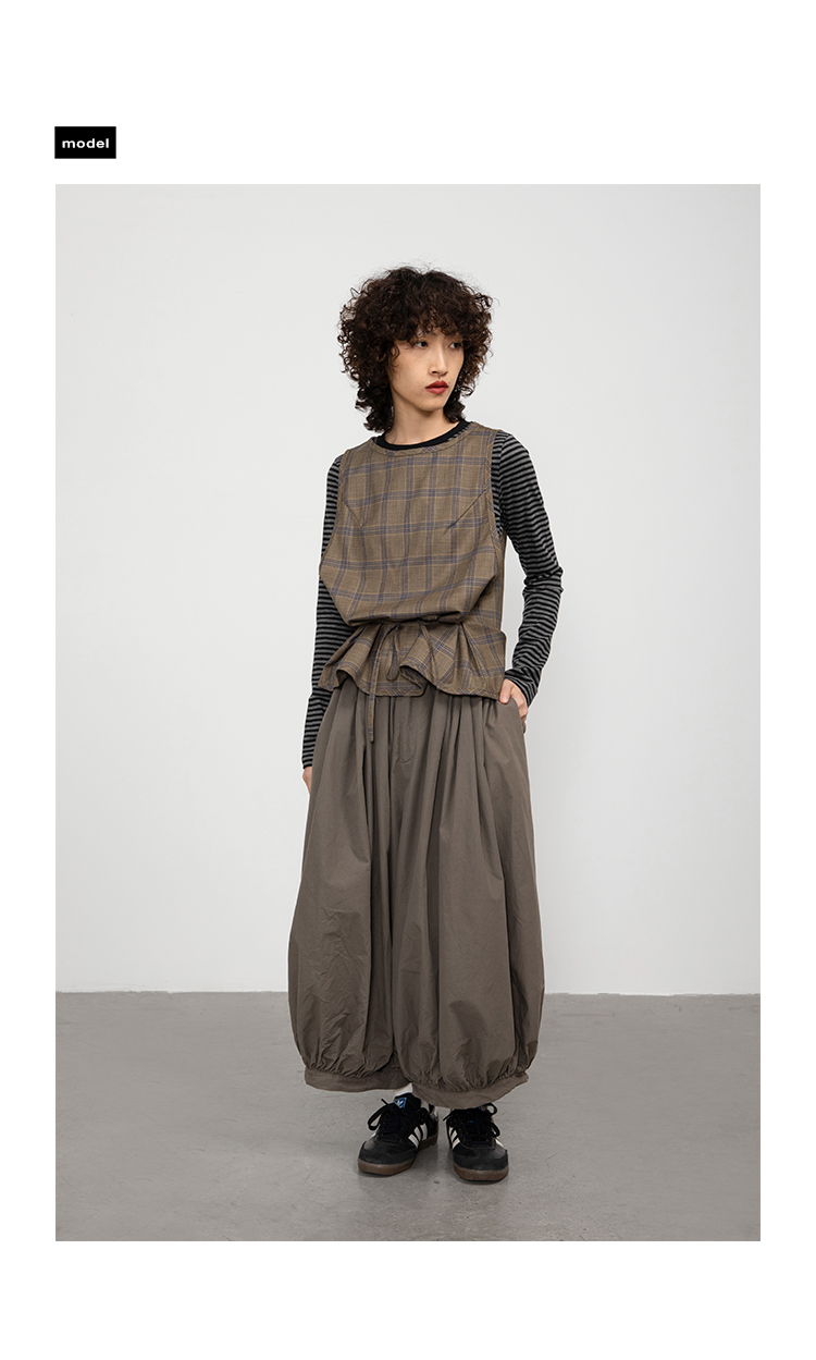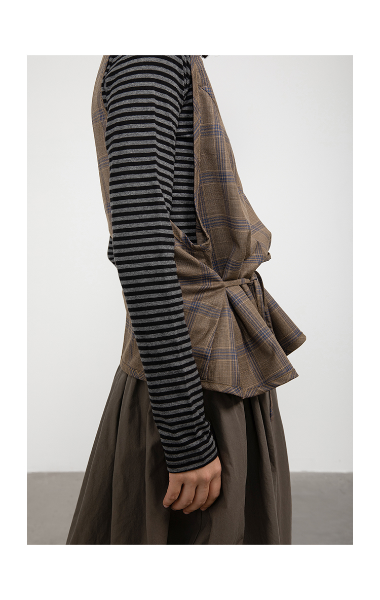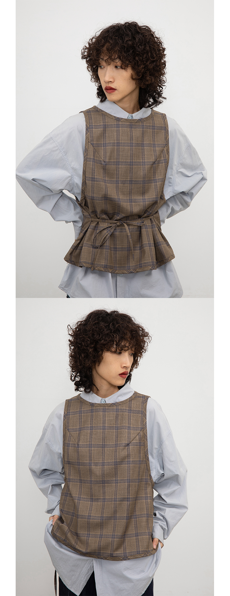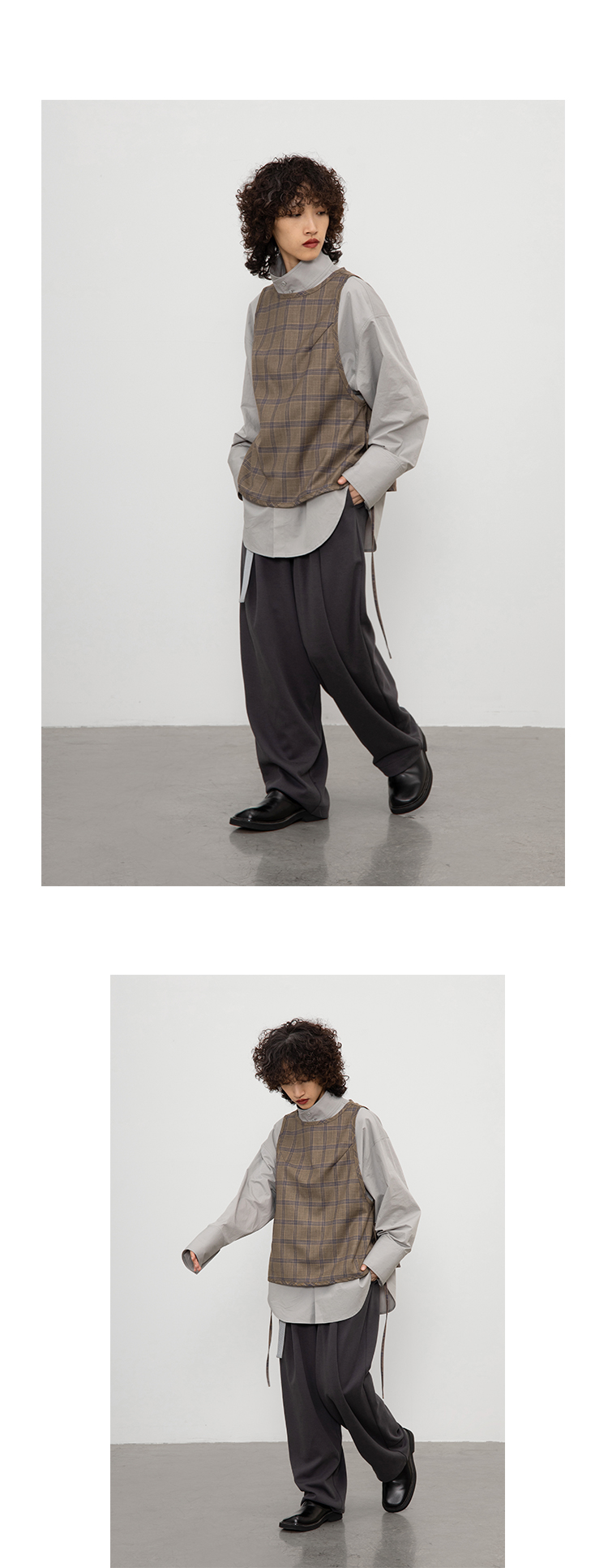 CryingCenter 复古棕色格纹背心 直筒/收腰荷叶边两穿 哭喊中心